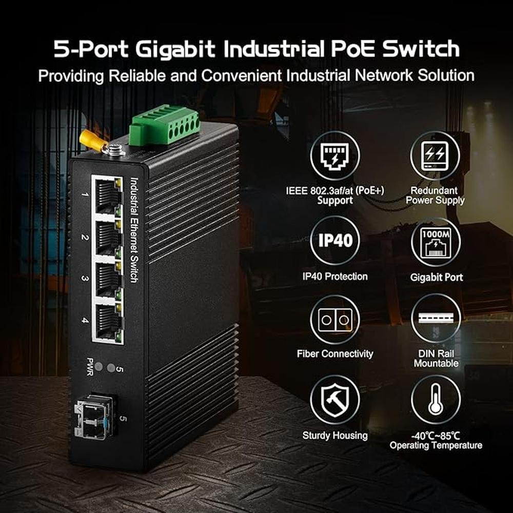• Our high-end Binardat 5-Port Gigabit PoE DIN Rail Industrial Ethernet Switch boasts advanced PoE port technology, providing exceptional power delivery, efficiency, and reliability, making it perfect for Indian homes and offices.