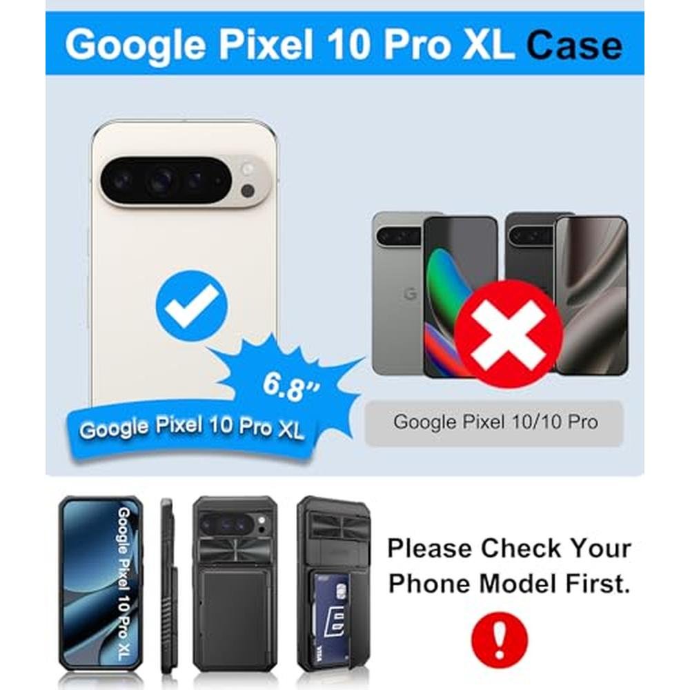 Experience the ultimate protection for your Google Pixel 10 Pro XL with the BXYJY case wallet, featuring a built-in card holder that can store 4-5 cards, a slide camera cover, and military-grade drop protection. This rugged and heavy-duty case is designed for both men and women, providing a practical and stylish solution for daily use. Made with high-quality materials, this premium-grade case is perfect for those looking for a top-tier phone case. Whether you're searching for a case for women or a case for the Google Pixel 10 Pro XL, this case is an excellent choice. Notice: This phone case is ONLY compatible with Pixel 10 Pro XL (6.9") Newly Released in 2025. Notice 1:This Pixel 10 Pro XL case is NOT compatible with other old Series. Notice 2: The Pixel 10 Pro XL wallet case does not support wireless charging.