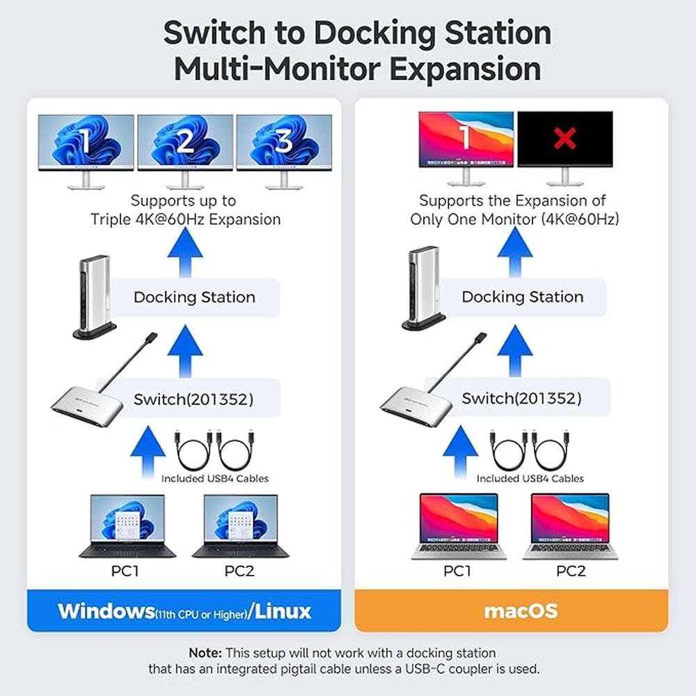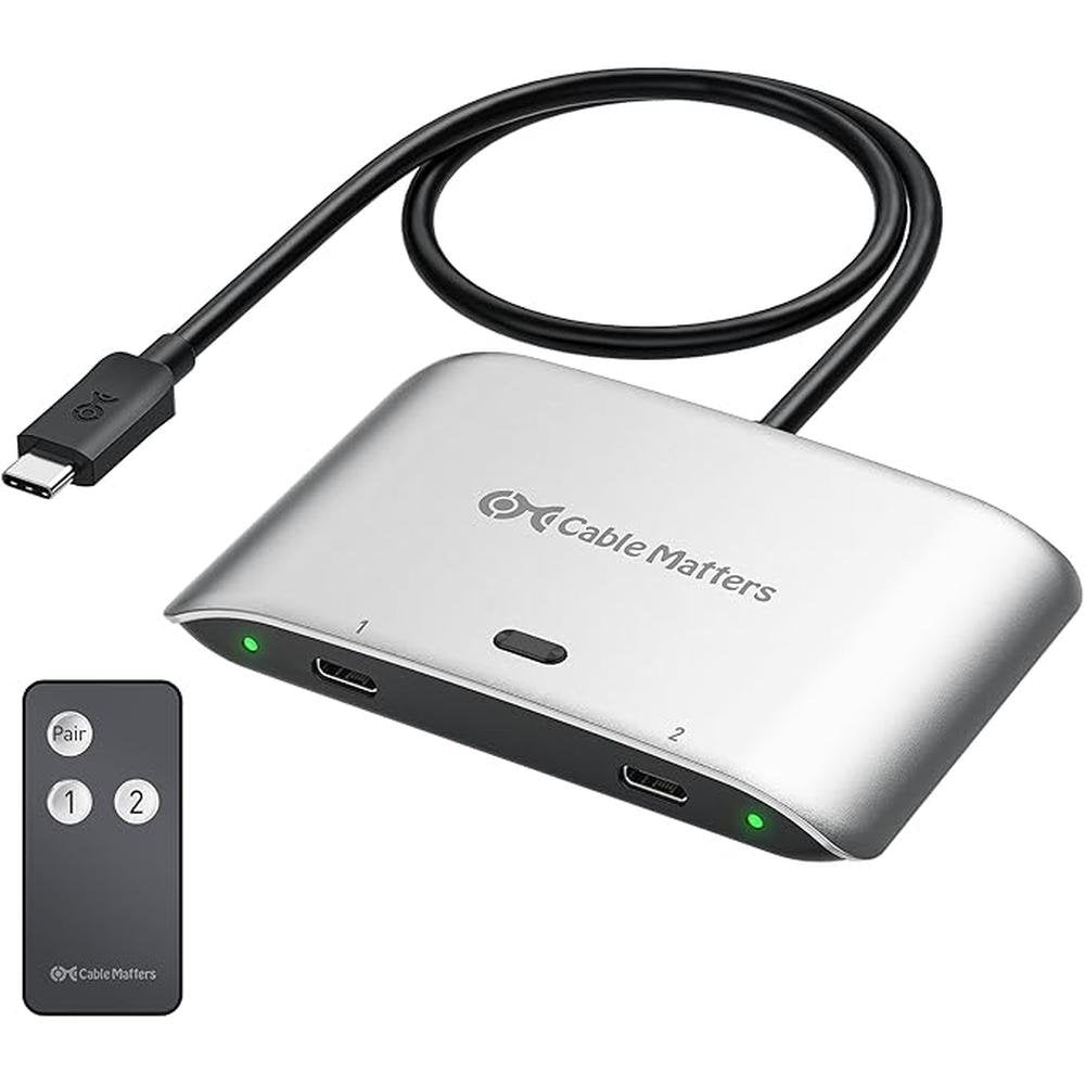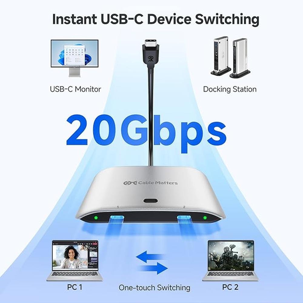 Thunderbolt Cable | Cable Matters 20Gbps USB-C Switch for 2 Computers | Supports up to 8K 30Hz on Windows 4K 60Hz on MacOS