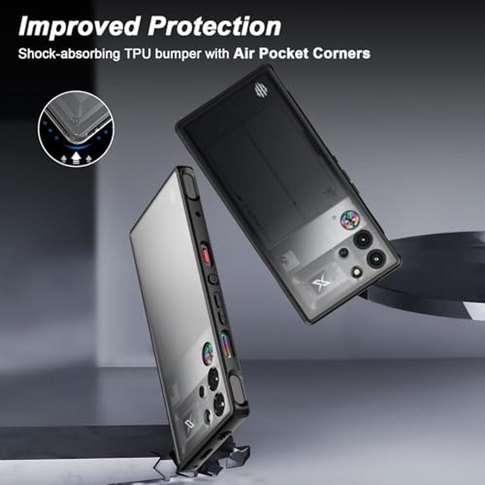 Matte Translucent Case with Shockproof TPU Bumper for Nubia Red Magic 10 Pro & Red Magic 10S Pro 6.85 Highlights Combining a tough PC back and a flexible TPU frame, this case doesn't add too much bulk while giving the Red Magic 10 Pro adequate protection thanks to the inner air-pockets and raised edges. The matte clear back prevents fingerprints/smudges. There are precise cutouts for the charging port, speakers and the protruding buttons are easy to access. Package Includes 1* Protective Case for Red Magic 10 Pro/10S Pro