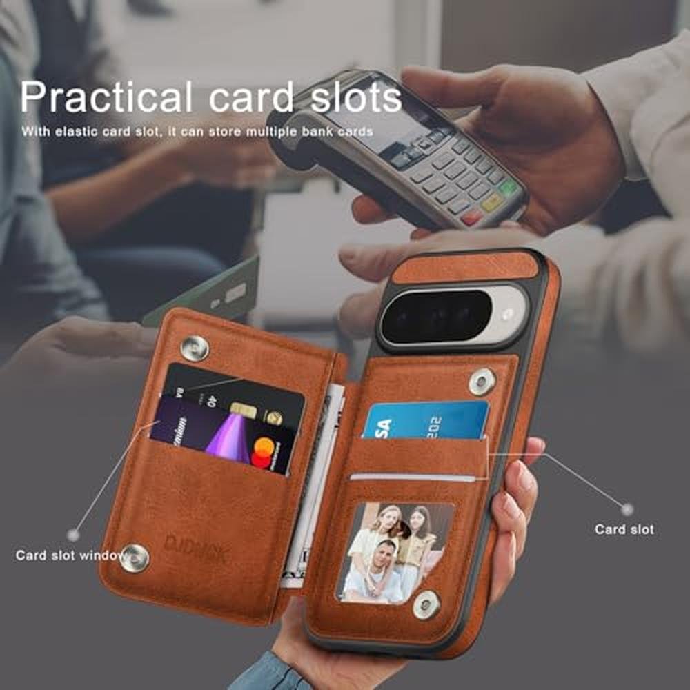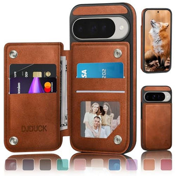 Pixel DJDUCK | Google Pixel 10/10 Pro Case Wallet with Card Holder | Magnetic Clasp Cover RFID Blocking Leather Protection