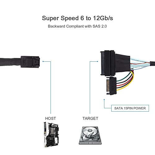 Experience the ultimate in high-speed data transfer with H!Fiber.com's 12G Internal Mini SAS HD SFF-8643 to U.2 SFF-8639 NVMe SSD Cable, designed to support the latest PCIe 4.0 standards. This 1-meter (3.3ft) cable boasts an impressive 12Gbps transfer rate and 85 Ohm impedance, ensuring seamless connectivity for your NVMe SSDs. Featuring a 15-pin male SATA power connector, this SFF fiber cable is perfect for applications requiring high-bandwidth and low-latency data transmission. With its compact design and rugged construction, this SFF fiber optic connector is ideal for use in small form factor systems, making it an excellent choice for premium high-end electronics. Elevate your data transfer experience with this top-tier SFF fiber cable, engineered to deliver exceptional performance and reliability.