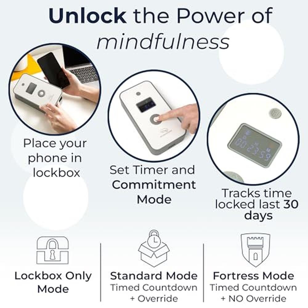 • EASY TO USE - OUT OF SIGHT, OUT OF MIND: Set a countdown timer and choose your "Commitment Level" with 3 unique modes: Patent-Pending Fortress Mode (Timed Countdown with NO unlock code), Standard Mode (Timed Countdown with unlock code) and Lockbox Only (no timed countdown). Set the timer from 1 minute to 30 days. (Fortress Mode Override Code available by contacting customer support in emergencies)