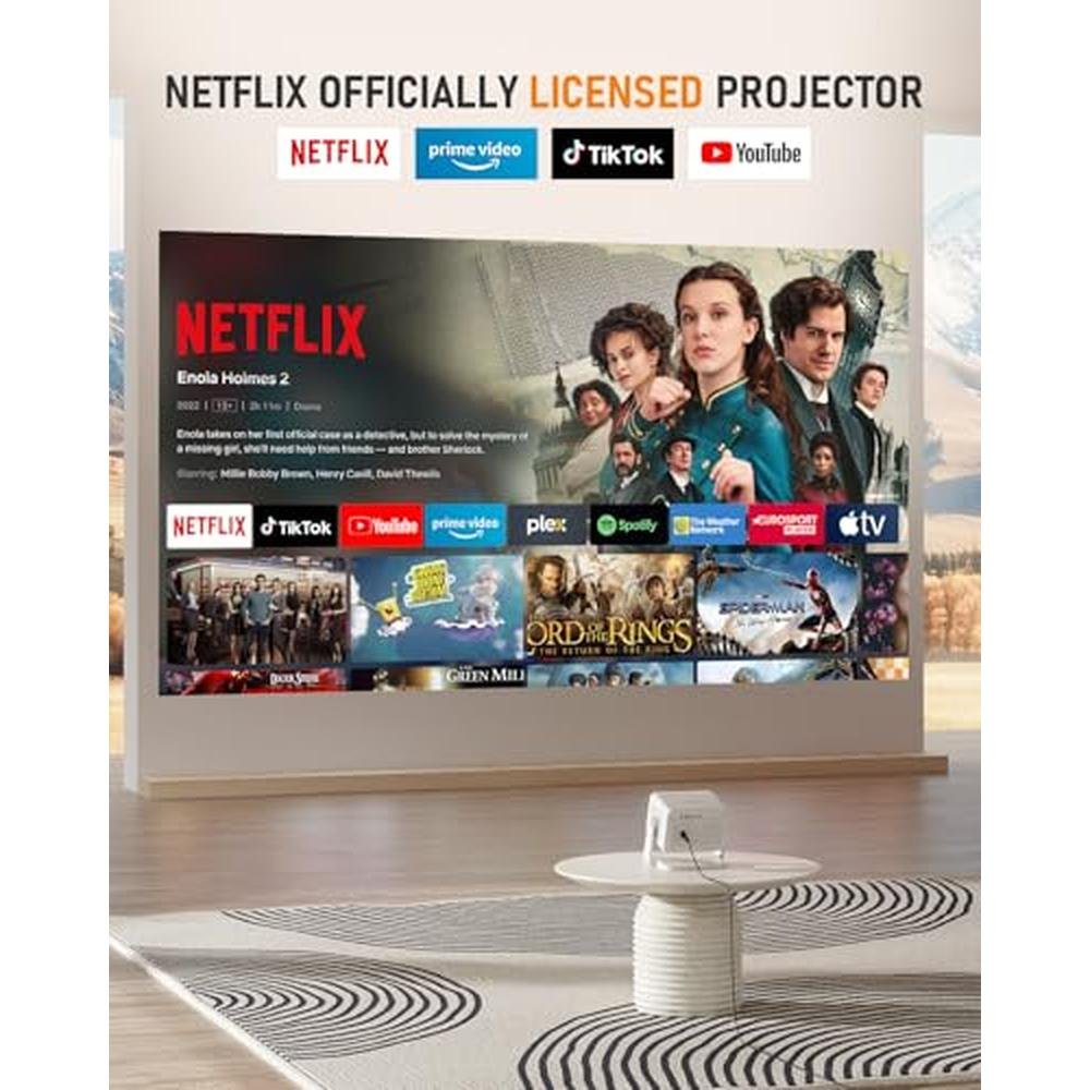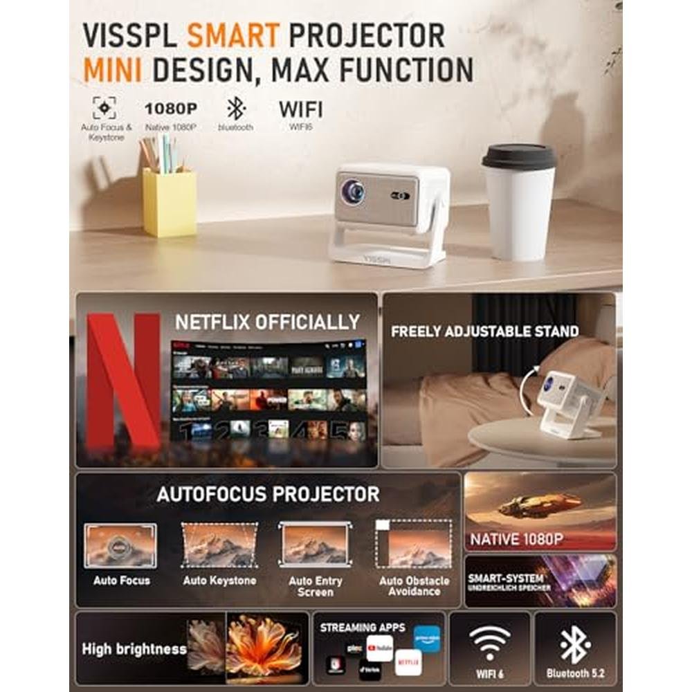 Immerse yourself in the ultimate home theater experience with our Netflix Licensed & Auto Focus Projector, the VISSPL Smart Projector. As a premium Netflix certified projector, you can indulge in your favorite shows and movies in stunning 4K resolution, with the convenience of WiFi and Bluetooth connectivity. Our portable mini projector features advanced auto focus and keystone for a perfectly aligned image, and comes with a sturdy stand for easy setup. Whether you're looking for a top-tier Netflix projector or a reliable solution to stream your favorite content, our projector is compatible with Netflix, Disney+, and Amazon, ensuring a seamless viewing experience. With its compact design and sophisticated technology, our projector is the perfect addition to any home theater setup.