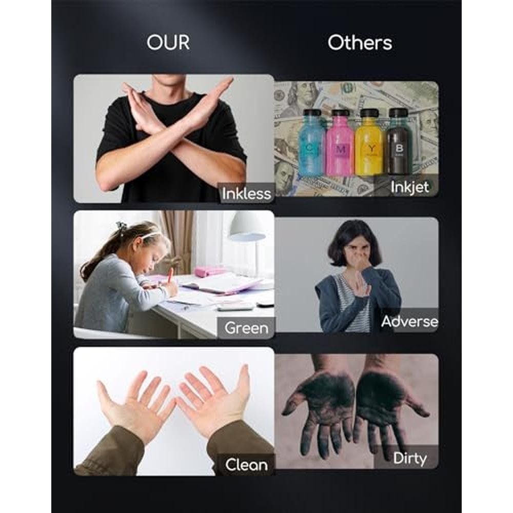 • Inkless printing technology eliminates the need for ink cartridges, reducing maintenance and costs