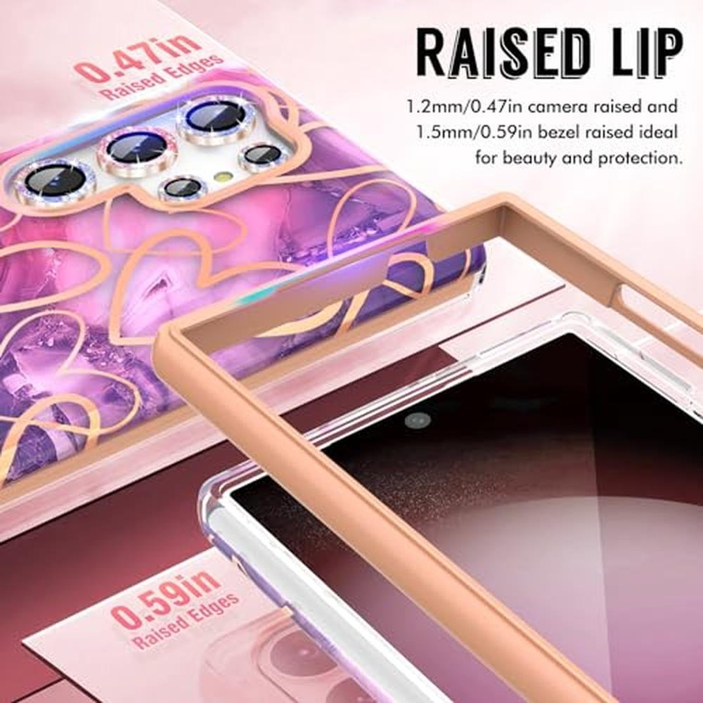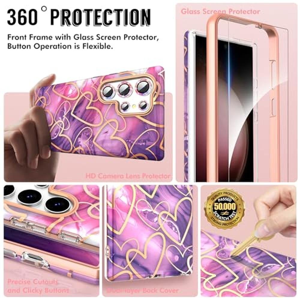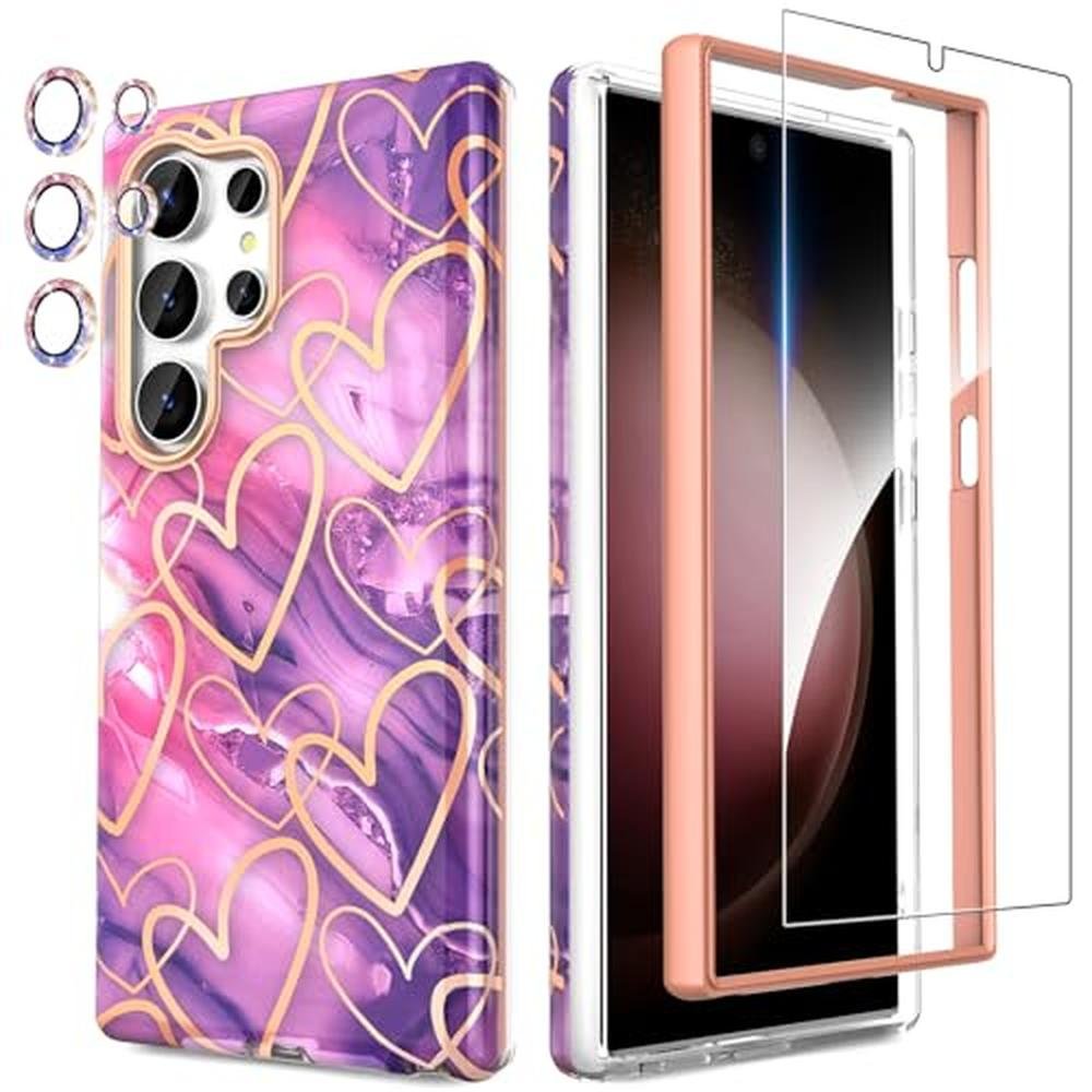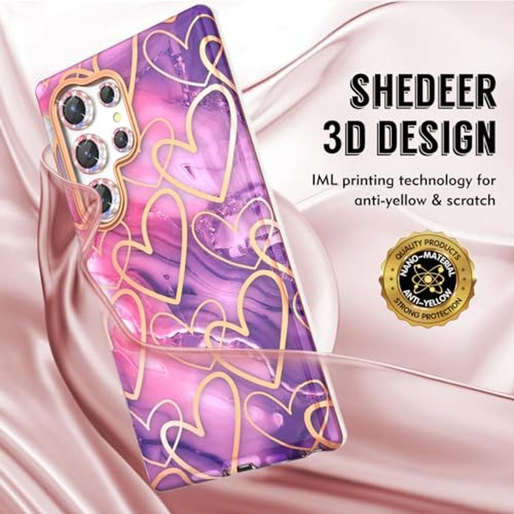 Experience the perfect blend of style and protection with the SHEDEER Designed for Samsung Galaxy S24 Ultra Case. This sleek and slim phone case features a shiny camera cover and screen protector, ensuring your device remains safe from scratches and drops. The fade-proof chic pattern adds a touch of elegance, making it a great accessory for anyone looking for a stylish and premium S24 case. With its shockproof protective design, you can enjoy wireless charging without having to remove the case, making it an ideal case for S24 ultra wireless charging. Whether you're looking for the best buy S24 ultra case or a reliable S24 case with card holder, this case has got you covered.