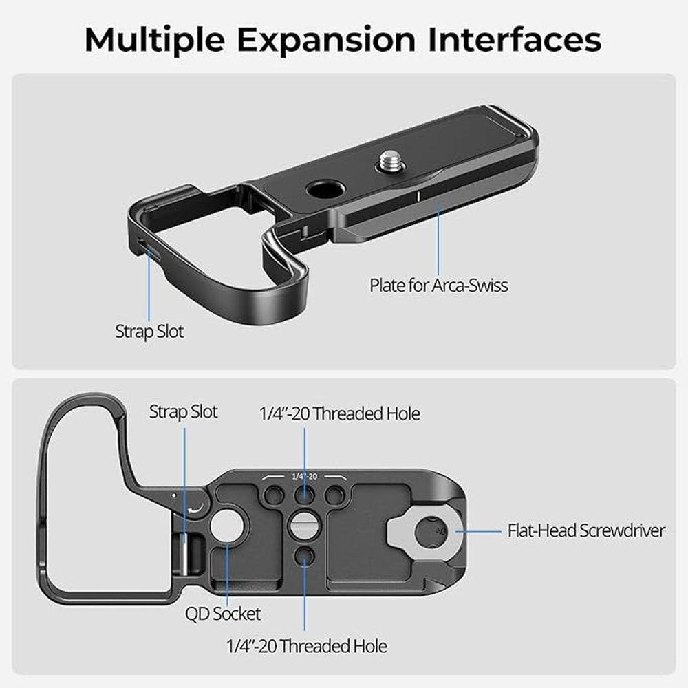 - Multiple Expansion Interfaces Built-in 14-20 threaded holes connect to the grip (ID 4551). QD ports at the bottom are compatible with the QD shoulder strap (ID 4118), and the strap hole is compatible with the wrist strap (ID 3848).
