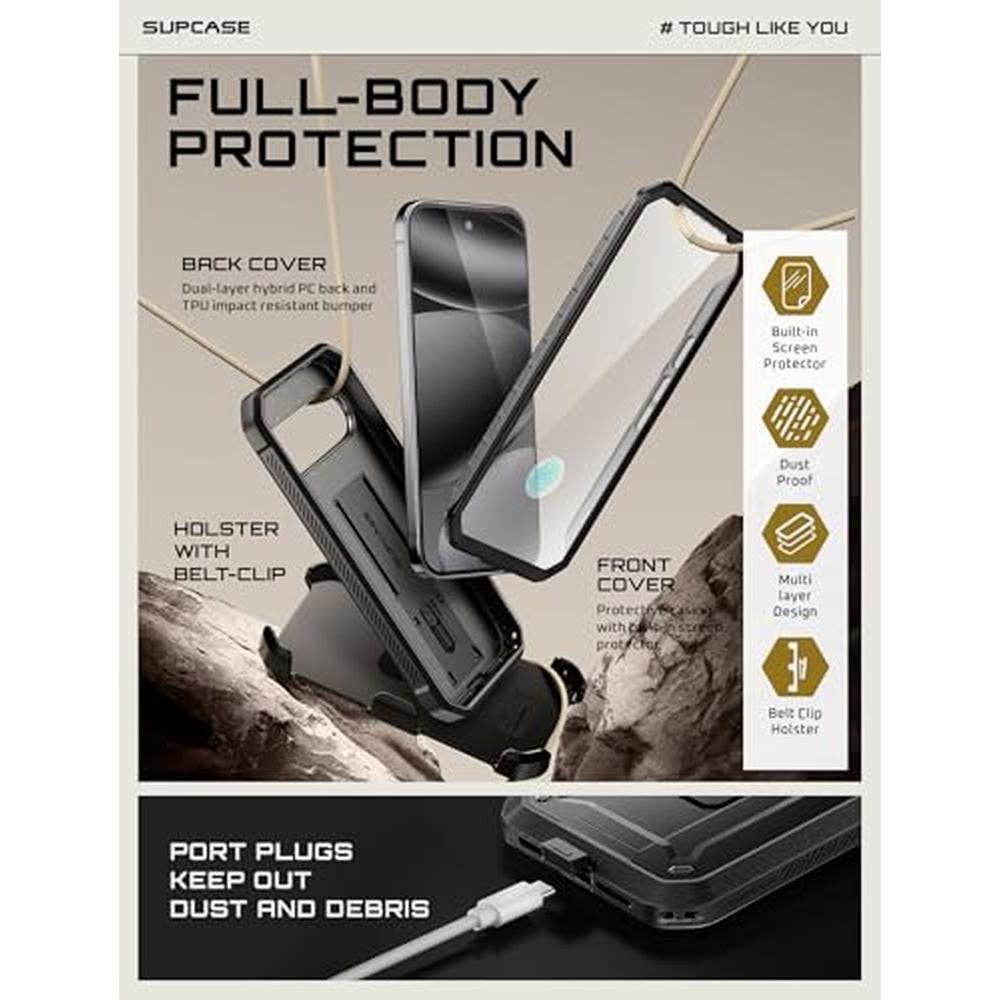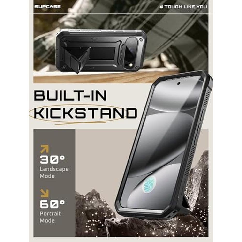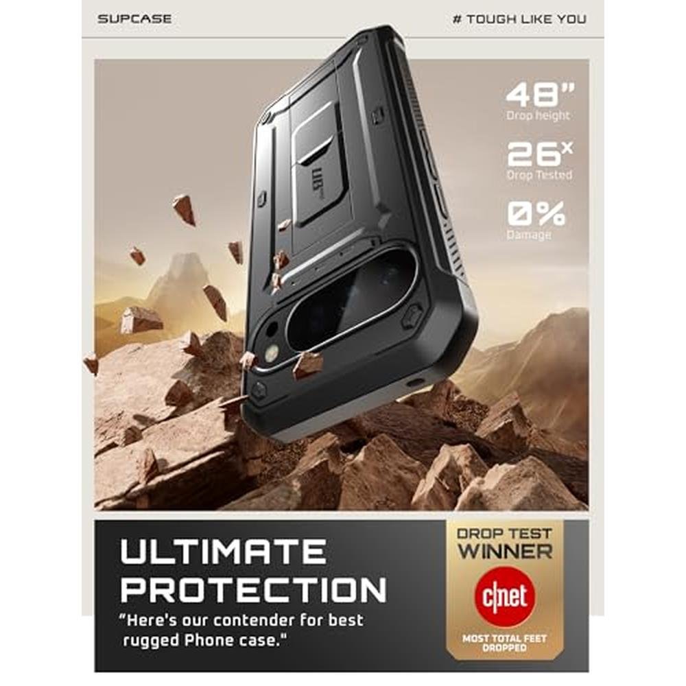Key Features: The SUPCASE Unicorn Beetle Pro case has been drop tested and has won CNET's Best Case Scenario Drop Test, providing the ultimate defense against drops. The dual-layer system fits together securely, and the design is exclusively made for the Google Pixel 10 Pro XL, offering superior protection with a no-slip grip. The multi-function kickstand offers convenient hands-free viewing from either landscape or portrait mode, and the rotatable holster provides user-friendly convenience. The built-in screen protector prevents scratches without compromising touch sensitivity, making it the perfect choice for anyone looking for a high-quality pixel case.