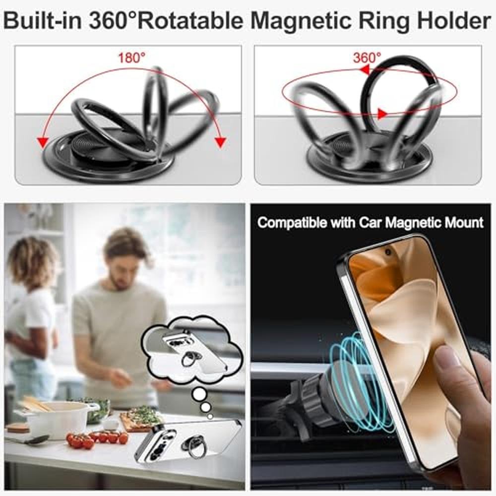 - Clear case with magnetic ring holder kickstand for hands-free viewing