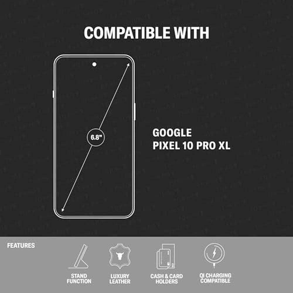 Every layer of material has been considered for the ultimate balance of style and functionality, making the case compatible with QI wireless charging. QI charging requires a plug with a minimum 20W output. With its advanced features and luxurious design, this leather case is the perfect accessory for anyone seeking a high-end protection solution for their Google Pixel 10 Pro XL 6.8 2025.