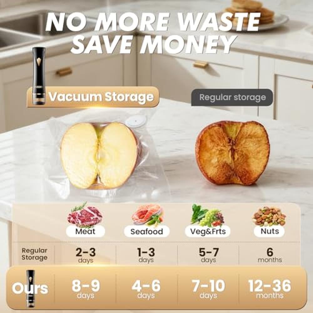 Vacuum Sealer | Compact Food Sealer Machine | 5x Fresh Longer Handheld Detachable Water Tank