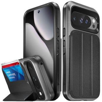 With Vena's patented vCommute Pixel 10 / 10 Pro wallet case, you can conveniently store up to 3 cards such as your ID, credit/debit cards, business cards, or transit cards in the hidden card holder slot on the back of the case. Better yet, vCommute even works with Google Wallet. The multi-angle magnetic-lock stand allows you to watch videos and movies at your desired angle, and the military-grade drop protection with CornerGuard technology ensures your device is protected from drops and scratches.
