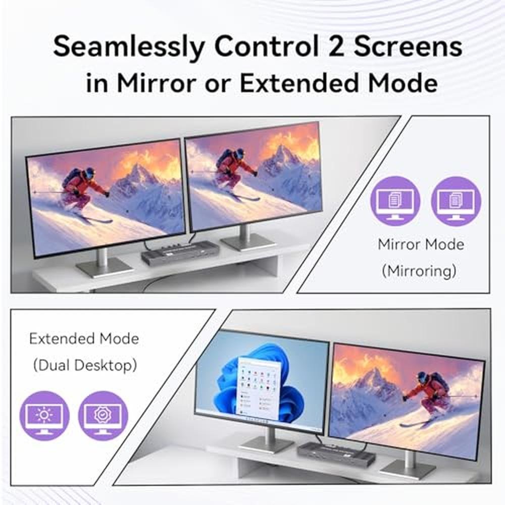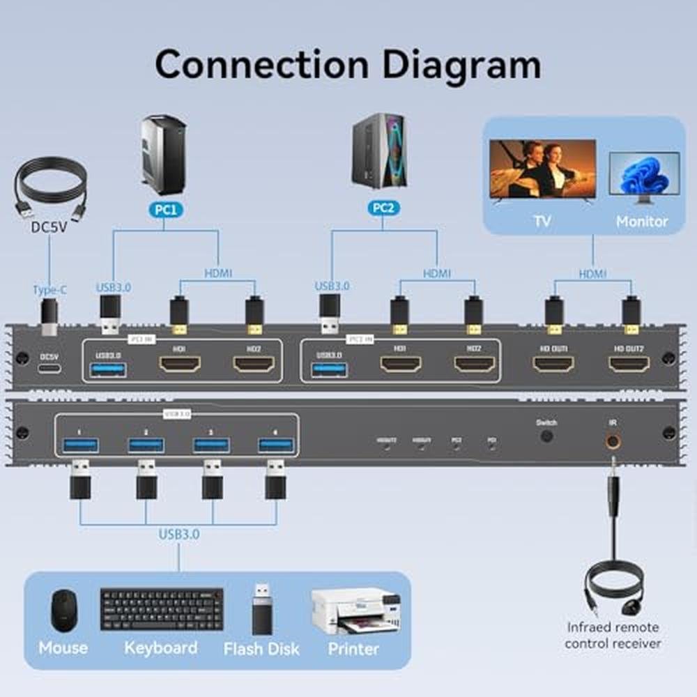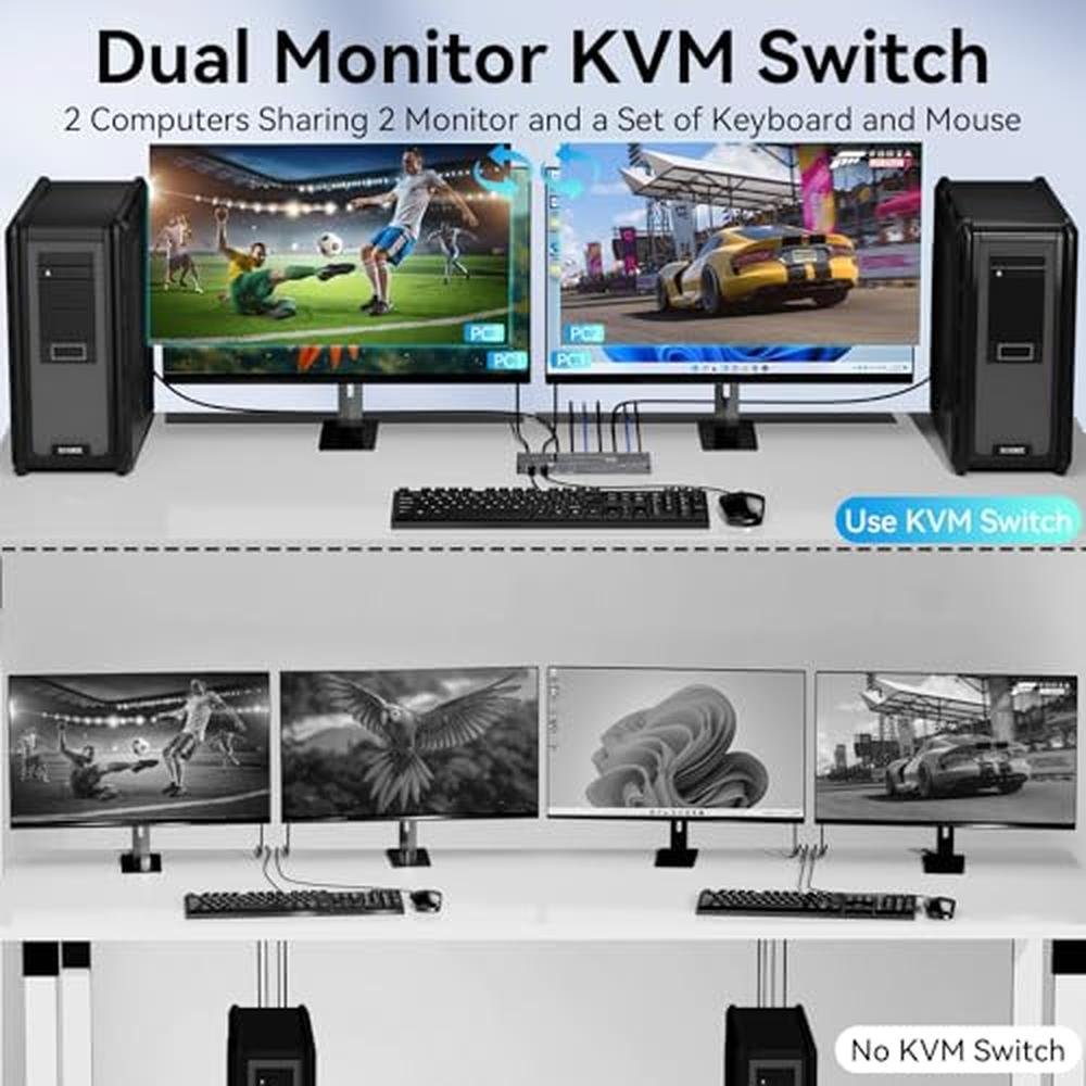 8K Dual HDMI KVM Switch 2 Monitors 2 Computers 8K@60Hz/4K@144Hz,Support 2 Computer Dual Monitors and 4 USB 3.0 Devices,Share Keyboard Mouse Printer with IR Controller