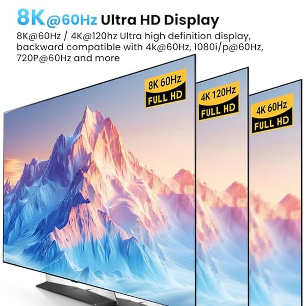 - 8K Ultra HD Resolution: This DP KVM Switch enables you to enjoy crystal-clear visuals with support for resolutions up to 8K@60Hz. Backward compatible with 4K@120Hz, 4K@60Hz, 1080P@60Hz, 1080i@60Hz, 720P@60Hz and more. Perfect for graphic design, video editing, gaming, and other high-resolution applications. Note: make sure your computers, monitors, and cables all support 8K and high refresh rates.