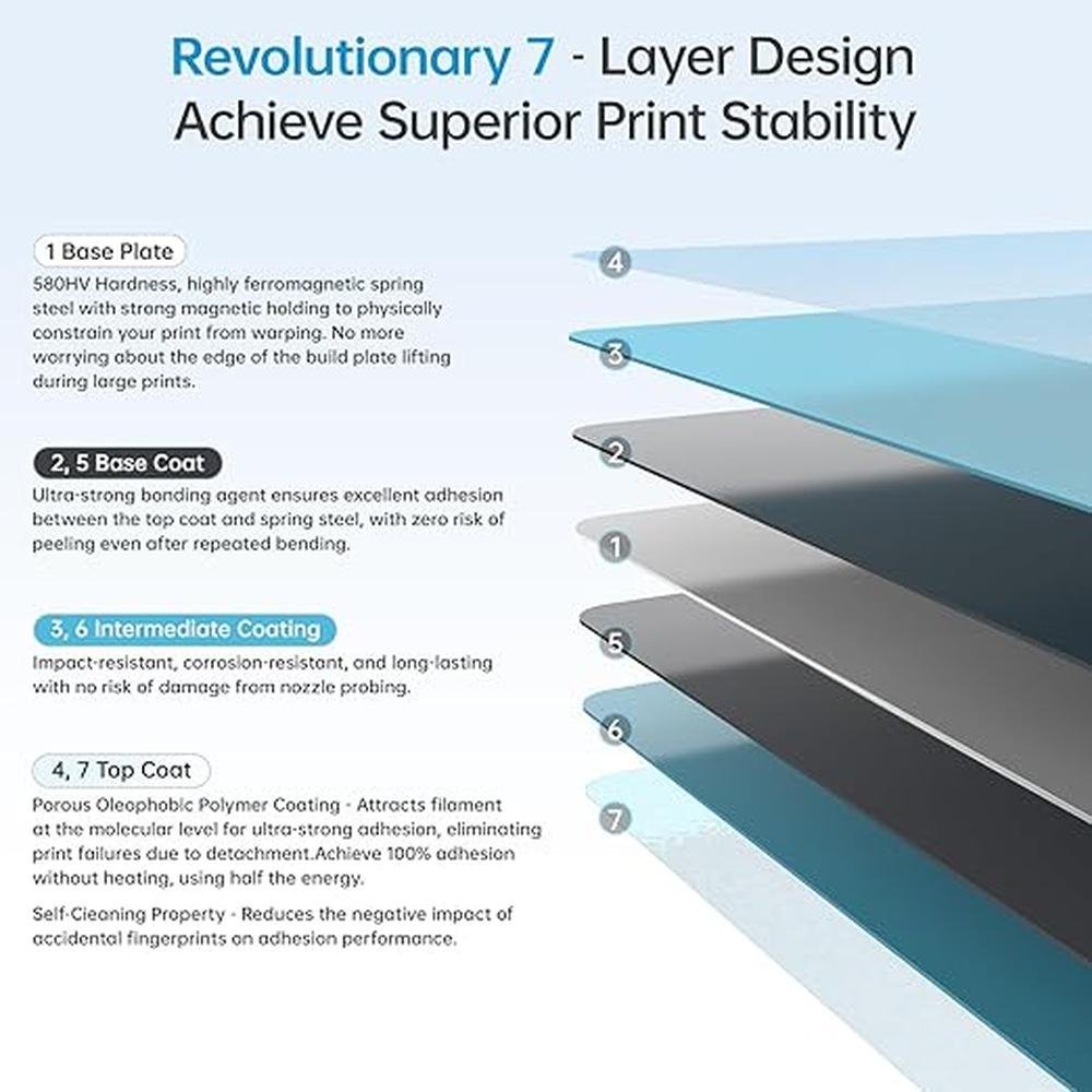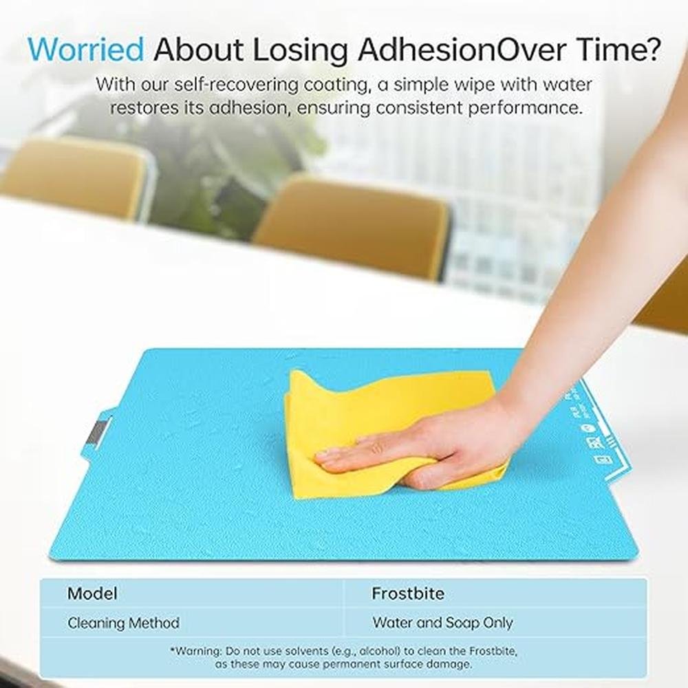 - Unmatched Adhesion, Zero HeatBIQU Frostbite cold print build plate is compatible with PLA at a low temperature range of only 30-50, and PETG at only 50-70. It highly surpasses traditional PEI steel spring sheets as per prints adsorption in cool printing with PLA and PETG. Its superior first-layer adhesion helps you to keep away from glue, edge warping and print falling off.