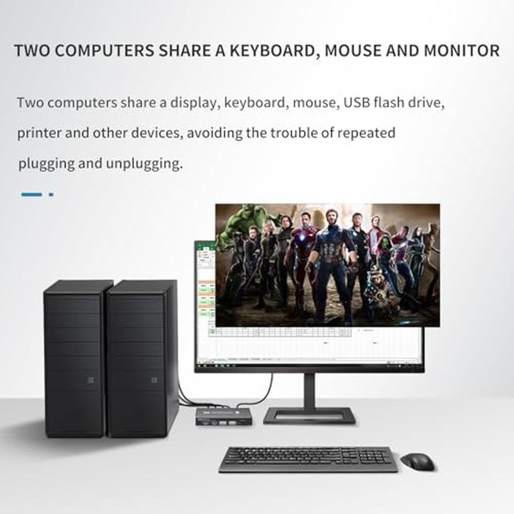 HDMI KVM Switch 2 Port Box,1 Monitors 2 Computers edid Emulator,USB 3.0,4k 60hz KVM Switches for 2 Computers Share Keyboard Mouse Printer and one HD Monitor,Support EDID Copy2K144.