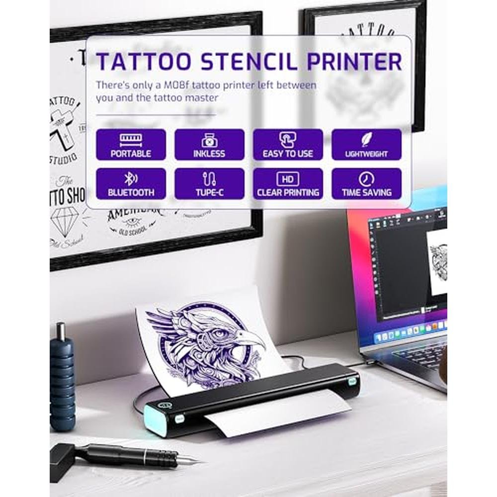 - The Phomemo Tattoo Stencil Printer M08F is designed to provide efficient and precise tattooing, reducing the need for tedious stencil drawing