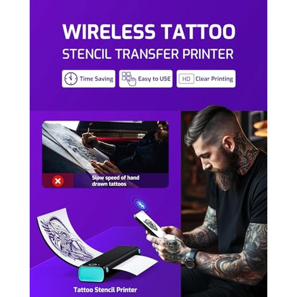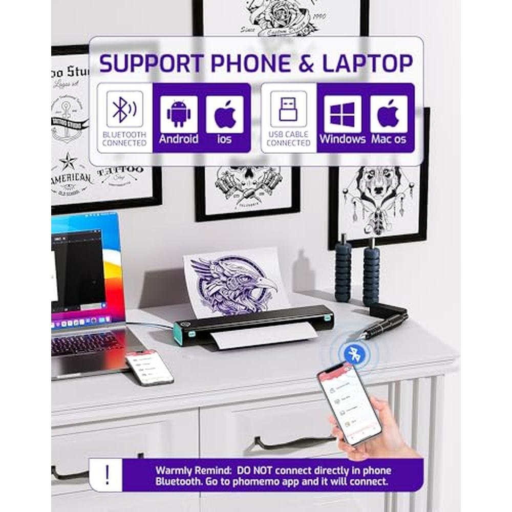 Experience the revolutionary Phomemo Tattoo Stencil Printer M08F, a premium tattoo printer designed to elevate the art of tattooing. This sophisticated device is engineered to provide precise and efficient tattooing, seamlessly connecting with your phone, tablet, or PC via Bluetooth. Whether you are a seasoned tattoo artist or an emerging talent, this top-tier tattoo printer is the ultimate solution for taking your craft to new heights. With its intuitive interface and superior printing capabilities, you can create exquisite tattoos with ease, bidding farewell to the tedious process of stencil drawing. The Phomemo Tattoo Stencil Printer M08F is a game-changer in the world of tattooing, offering unparalleled quality and precision.
