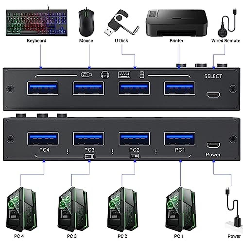 USB 3.0 Switch 4 Computers,Camgeet 4 Port USB Switch Selector Sharing Keyboard Mouse Printer,USB Switcher Compatible with Mac/Windows/Linux,Wired Remote and 4 USB 3.0 Cable Included