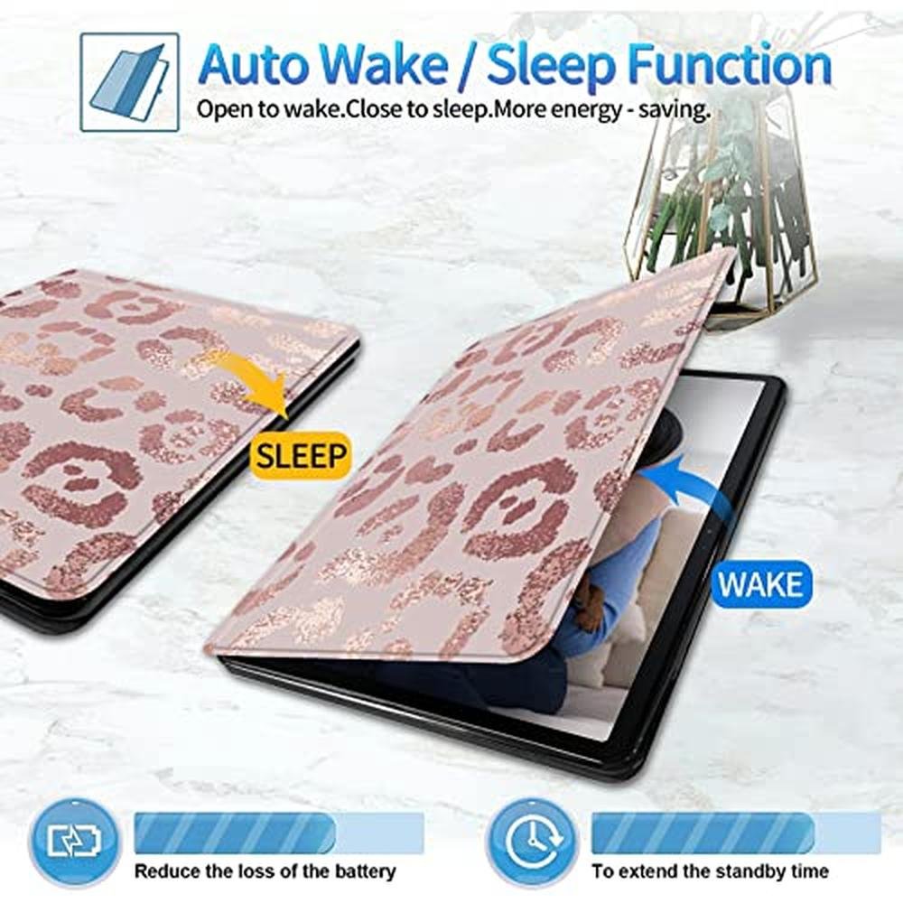 Indulge in the ultimate protection and style with our 360 Degree Rotation Case, meticulously designed for the 6.8-inch Kindle Paperwhite 11th Generation 2021 and Kindle Paperwhite Signature Edition. As a premium accessory, this smart standing protective cover boasts auto sleep/wake functionality, ensuring your device is always ready when you need it. The vibrant pink glitter leopard design adds a touch of personality to your e-reader, while the durable construction provides long-lasting defense against scratches and drops. Whether you're looking for a superior Kindle Paperwhite case for the 11th generation or the Signature Edition, our cover is the perfect choice. With its versatile 360-degree rotation, you can enjoy optimal viewing angles and typing comfort.