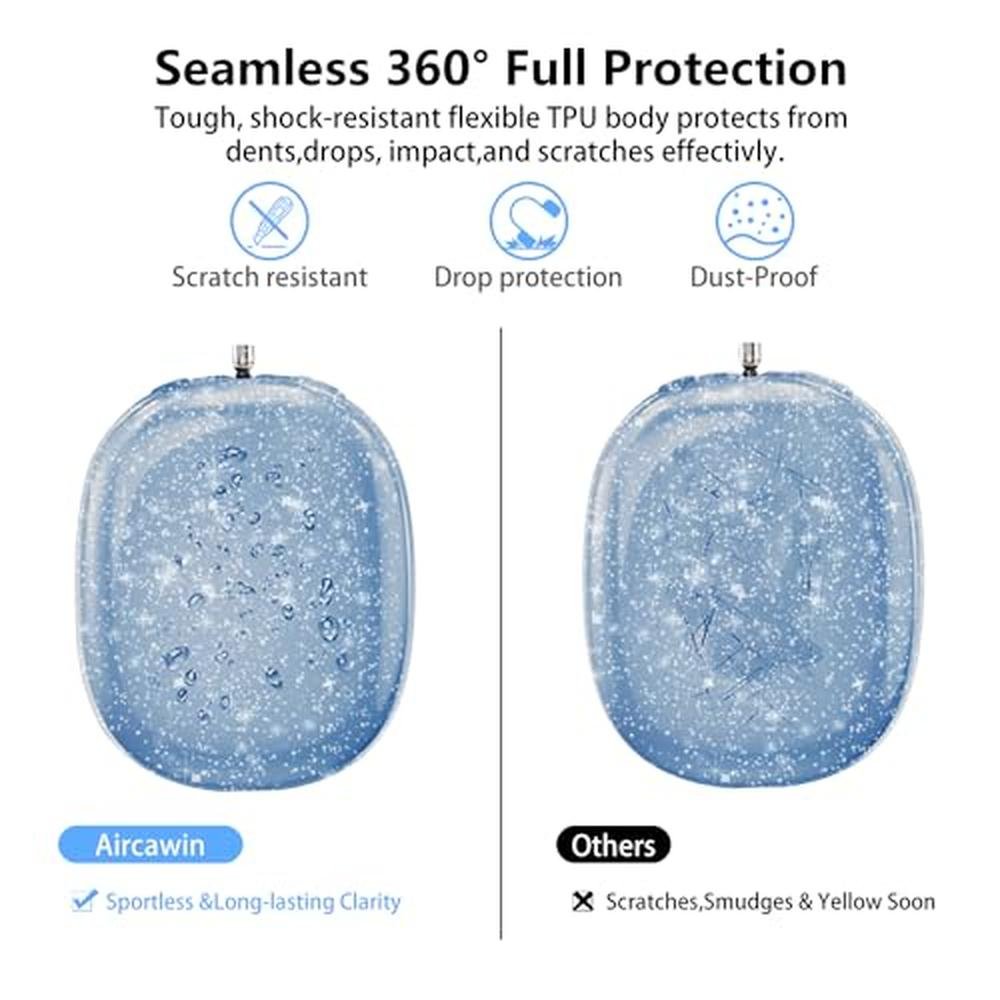 Case AirPods | Aircawin Clear Blue Glitter Shockproof Case for AirPods Max | Premium Protection