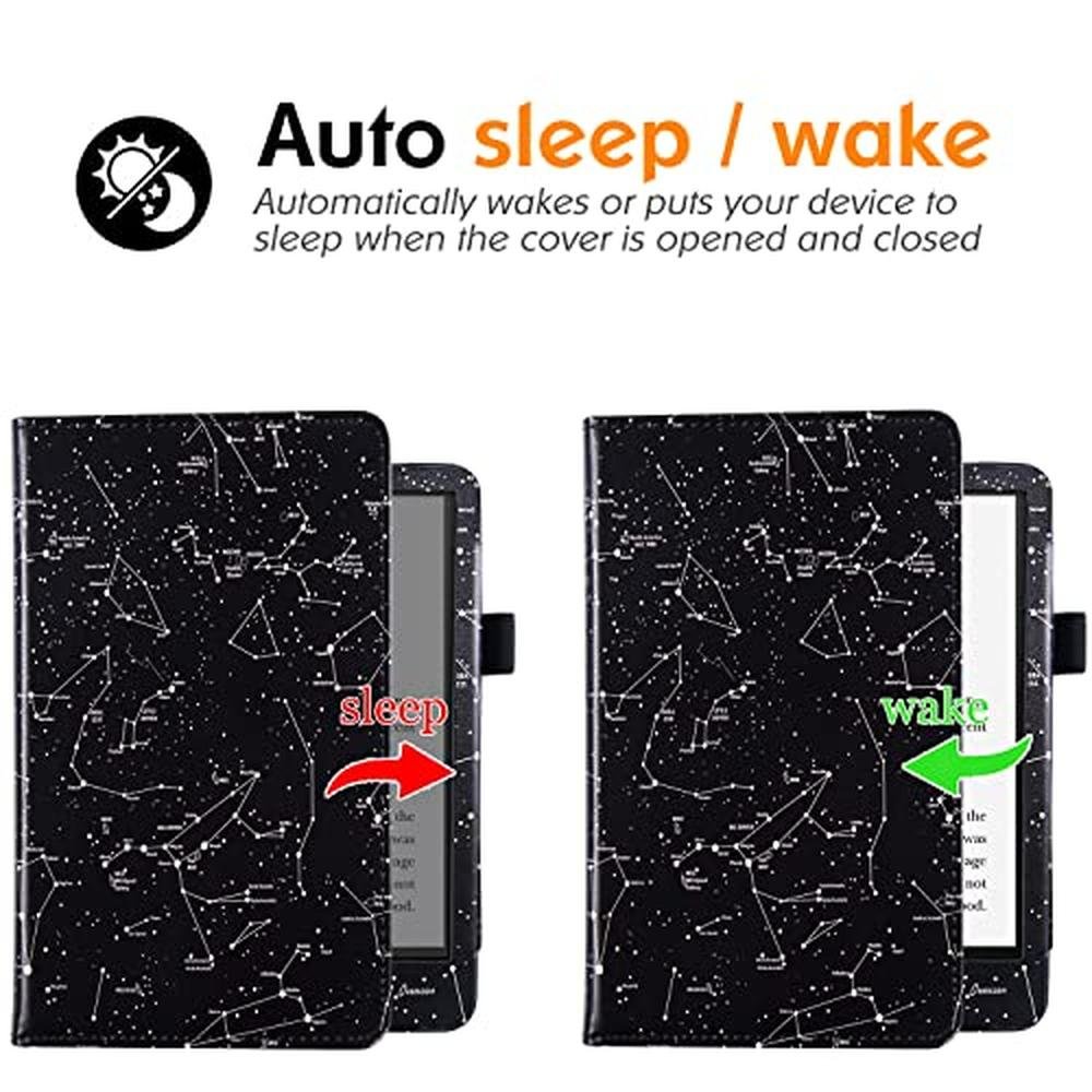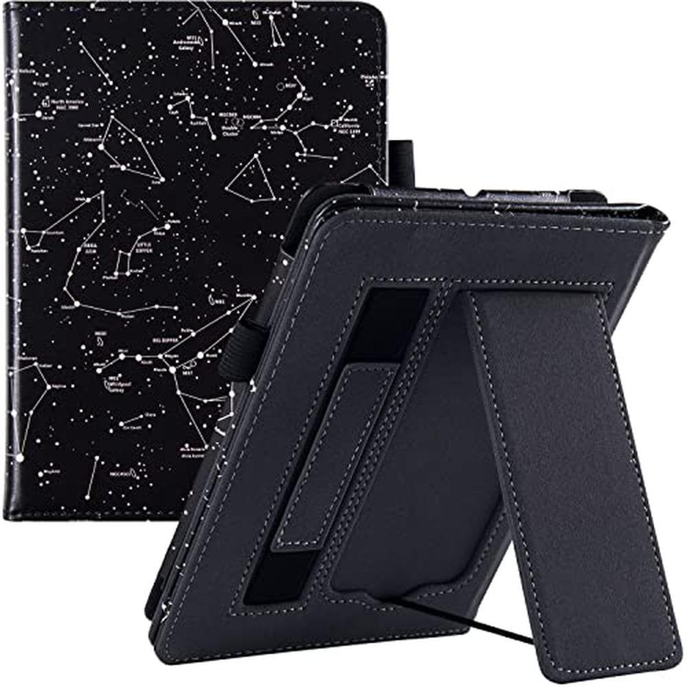 Experience the ultimate reading companion with the BOZHUORUI Stand Case, expertly designed for the 6.8 Kindle Paperwhite 11th Generation, including the 2021 Paperwhite Signature Edition e-Reader. Crafted from superior-quality PU leather, this sleeve cover provides top-tier protection and elegance. The Constellation design adds a touch of sophistication, while the hand strap ensures a secure grip. Indulge in effortless reading with the auto wake/sleep feature, which conserves battery life and enhances your overall reading experience. Whether you're looking for a reliable case for your daily commute or a refined accessory for your home library, the BOZHUORUI Stand Case is an exceptional choice. With its durable construction and functional design, this case is sure to meet your expectations.