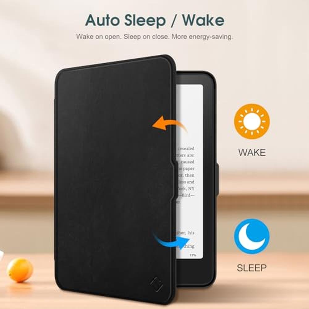 - The case is made from premium PU leather, offering a durable and stylish cover that automatically puts your Kindle to sleep and wakes it up