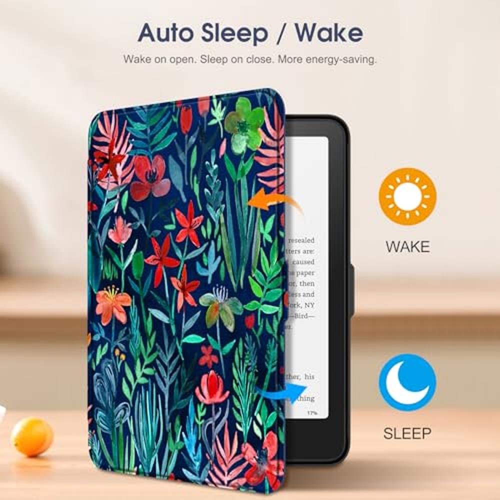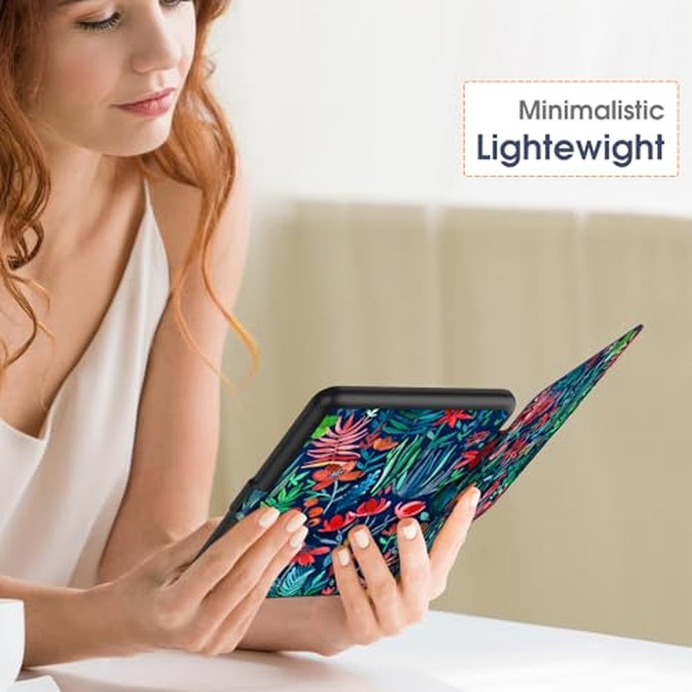 Experience the ultimate protection for your 7 All-New Kindle Paperwhite (12th Generation, 2024) and Kindle Colorsoft with the Fintie Case, a sophisticated and lightweight shell crafted from premium PU leather. This high-end Kindle Fintie case features an advanced auto sleep/wake function, ensuring your device conserves battery life when not in use. The vibrant Jungle Night design adds a touch of exclusivity to your e-reader, while the durable construction provides long-lasting protection against scratches and spills. Whether you're reading at home or on-the-go, this top-tier Fintie Kindle case is the ideal accessory for anyone looking for a reliable and stylish cover. With its precise cutouts and easy application, you can indulge in uninterrupted reading sessions.