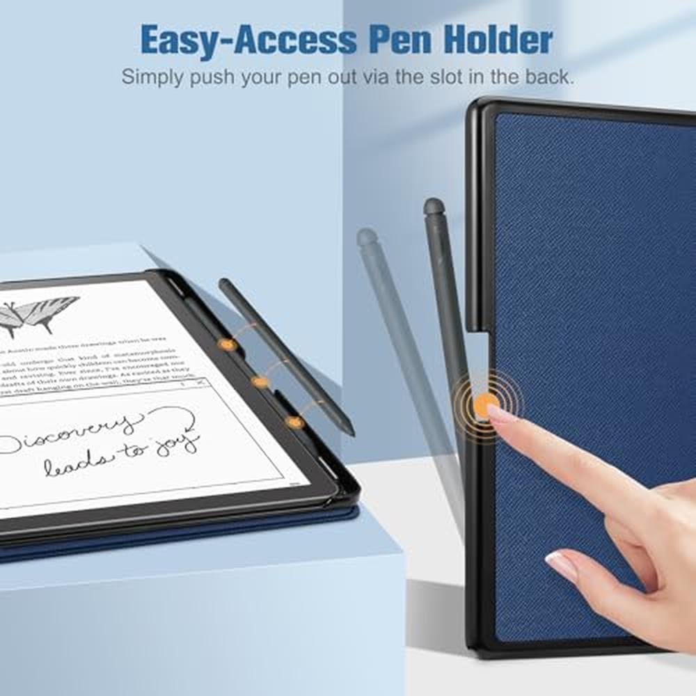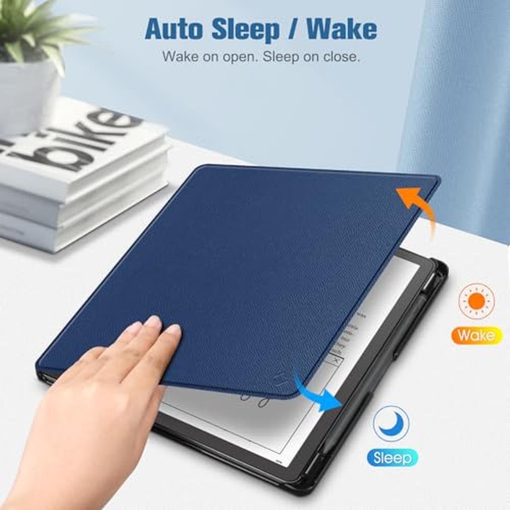 Experience the ultimate in protection and style with the Fintie Slim Case, expertly designed for your 10.2-inch Kindle Scribe. Crafted from high-quality, lightweight PU leather, this premium folio cover features a sleek and sophisticated design, complete with a built-in pen holder to keep your stylus within easy reach. The innovative auto sleep/wake function helps to conserve battery life, while the slim and lightweight design allows for effortless carrying. Whether you're seeking the perfect accessory for your Kindle Scribe or a stylish way to showcase your device, this Navy-colored case is an exceptional choice. With its durable construction and functional features, it's an ideal companion for anyone who values premium-grade protection and sophistication.