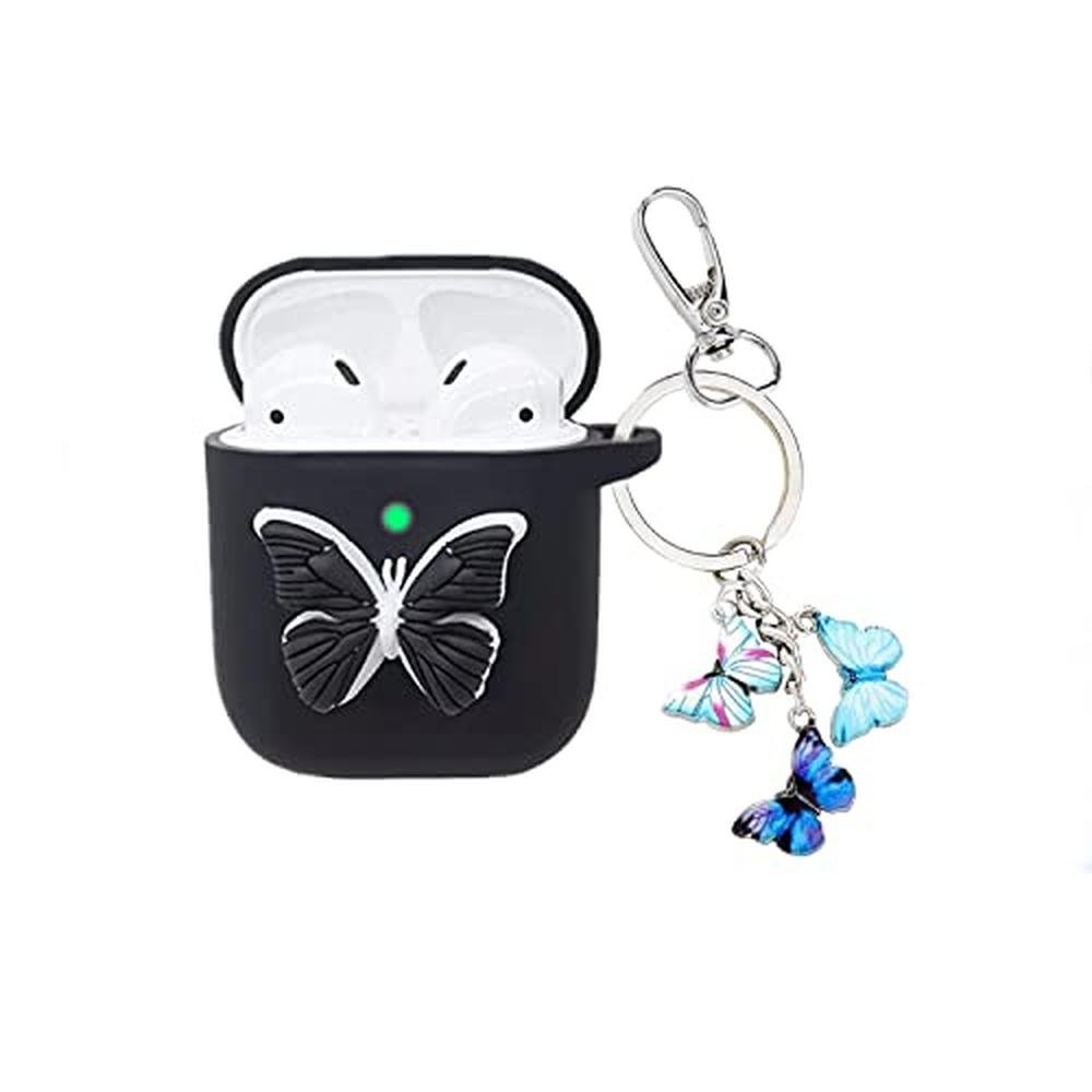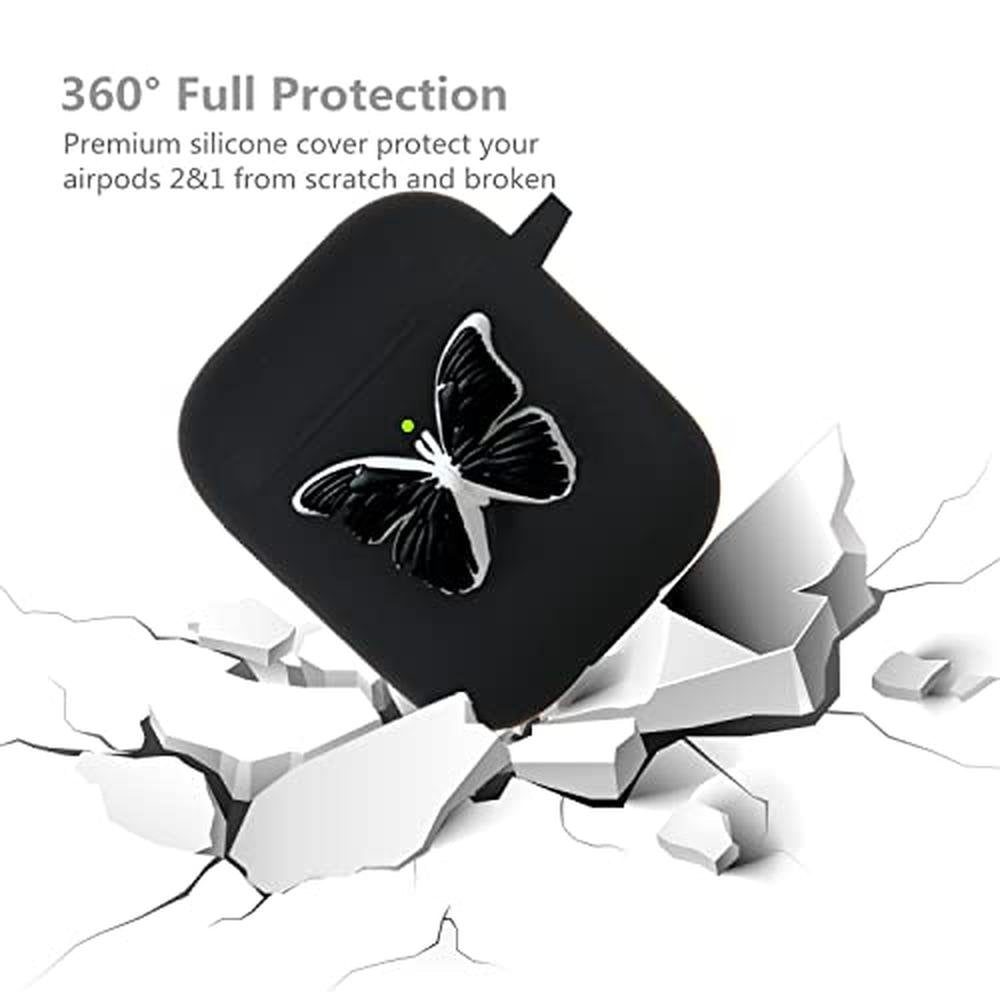 Case Butterfly | Premium Silicone Case Cover for Apple AirPods 2 1 with Cute Butterfly Keychain | Portable Shockproof Protection