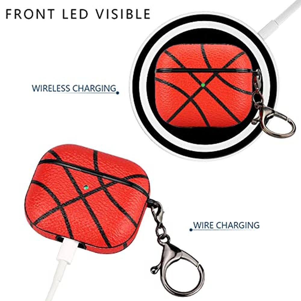 AirPods Case | Premium Shock-Resistant Basketball Case Cover for AirPods 3 with Keychain | Front LED Visible
