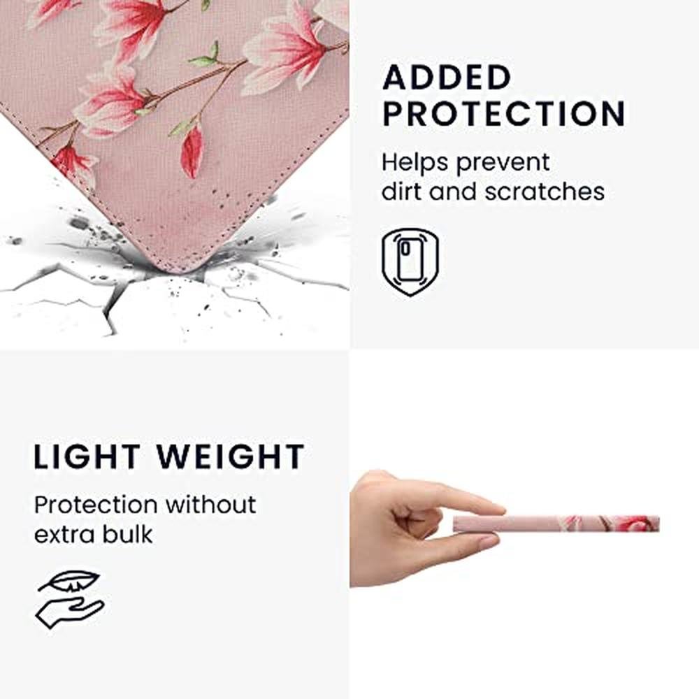 Case Pink | kwmobile Kobo Libra 2 Case PU Cover with Strap | Magnolias Pink White Dusty Pink Premium Protection