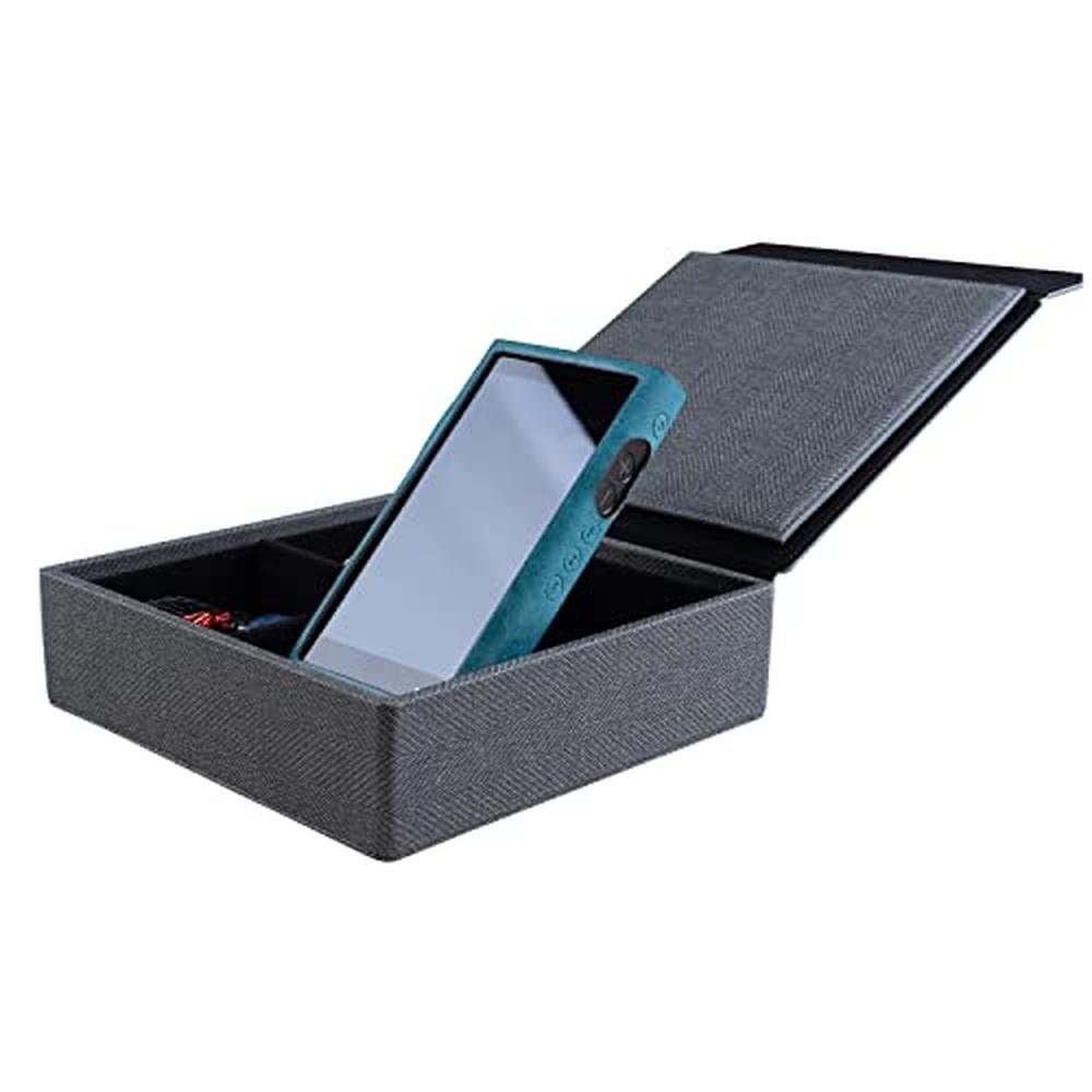 Immerse yourself in the world of premium audio with our handmade MITER Carrying Case, carefully crafted to protect your valuable earphones and digital audio player from shocks, fingerprints, and scratches. The magnetic cover securely closes, and separate compartments help carry IEM earphones and a player with ease. Made from high-quality Italy-made PU synthetic leather and suede, this case exudes sophistication and refinement. With dimensions of 183mm(7.2inch) x 189mm(7.44inch) x 50mm(1.97inch) and a weight of 431g (0.95lb), this case is the perfect blend of form and function.