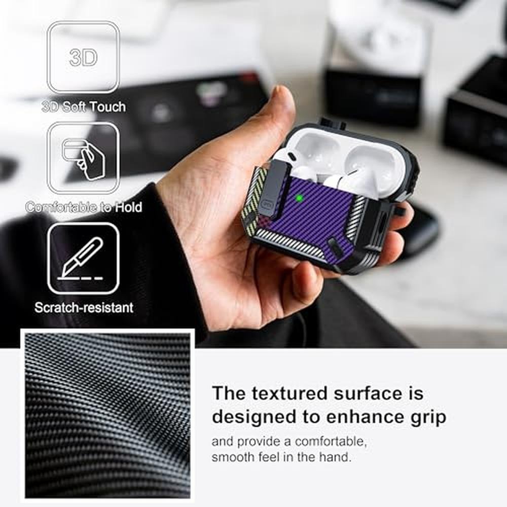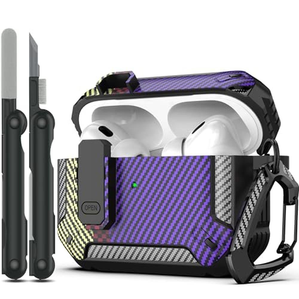 Experience the ultimate protection for your AirPods Pro 2nd Gen with the RFUNGUANGO case, designed specifically for the 2nd Gen charging case. This premium, high-end military hard case provides top-notch protective armor with a secure lock, ensuring your AirPods are safe from scratches and drops. The included cleaning kit keeps your earbuds in pristine condition. Compatible with AirPods Gen 2 (2023, 2022, 2019), this sophisticated, carbon fiber case in purple is the perfect accessory for anyone looking for a reliable and superior gen case solution.