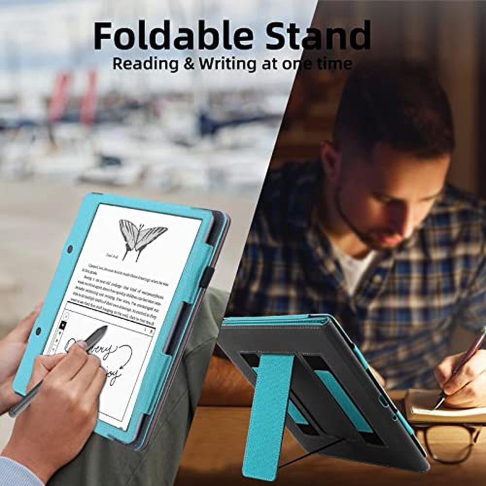 Indulge in the perfect blend of protection and elegance with the WALNEW Stand Case, meticulously designed for the 10.2-inch Kindle Scribe (2022 and 2024 releases). Crafted from superior quality PU leather, this cover combines refined aesthetics with exceptional durability. The case boasts auto sleep/wake functionality, two ergonomic hand straps for comfortable holding, and a convenient pen holder to keep your writing accessory secure. Whether you're seeking the finest Kindle Scribe case to elevate your reading and writing experience or a sophisticated way to safeguard your device, the WALNEW Stand Case in Mint Green is an exemplary choice. With its slim and lightweight design, this cover is an ideal Kindle Scribe accessory for those who value premium-grade protection and style.