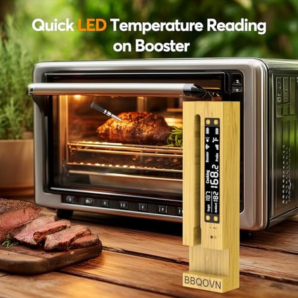 - Smart Base with Flexible OptionsYou decide how to grill: use the APP on your phone, or choose not to use your phone at all. The boosters large screen gives you instant readings, and you can carry it anywhere at homeliving room, kitchen, or backyardto monitor food temperatures in real time.