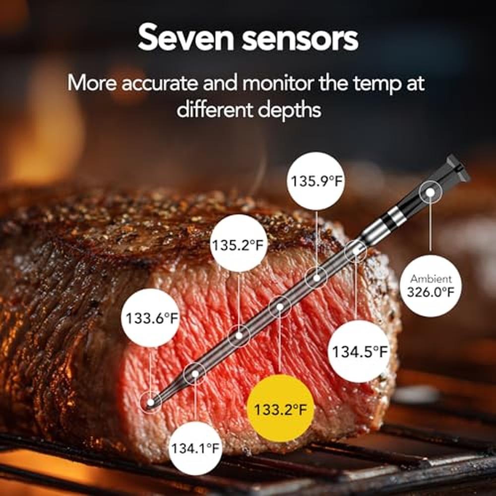 - 7 NIST-Certified Sensors:Six internal + one ambient sensor track doneness at different depths. Accurate records help you grill like a pro.
