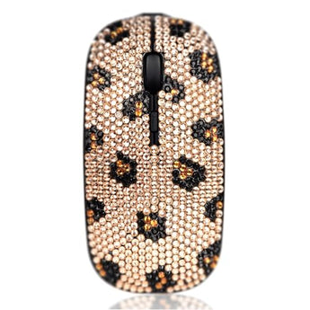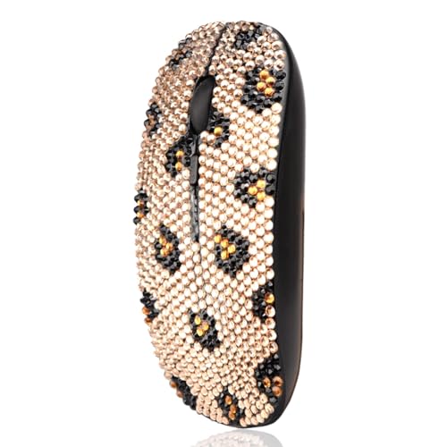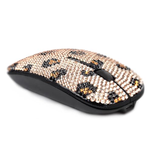 Experience the epitome of luxury and style with the Bling Wireless Mouse, a sophisticated computer mouse adorned with premium crystal rhinestones in a stunning champagne finish. Designed specifically for individuals who appreciate a touch of glamour, this bedazzled leopard mouse is the perfect accessory for any notebook, PC, laptop, or MacBook. With its reliable USB receiver and ergonomic design, this mouse is not only a fashion statement but also a functional and comfortable computing companion. Whether you're a fan of high-end accessories or simply looking to add a touch of elegance to your daily computing routine, this mouse is sure to impress. Stand out from the crowd with this unique and stylish mouse, perfect for those who value premium quality and design. Special Art co.,ltd aims at providing reliable and high-quality elegant, fashion, and ease-of-use bling bling Rhinestone and Crystallized products for all people who like them, especially for the young friends and kids with its youthful design. We have always insisted on handmade, only in this way can maintain its best quality and beautiful soul. This Luxury Bling Rhinestone 2.4G cordless mouse is compatible widely with Notebook, Computer, PC Laptop, MacBook, Chrome book, and more, its system-agnostic and great for home, office, classroom, etc. So whatever you use, we are confident that this wireless mouse will meet your need, and will make you be unique and remarkable with its elegant and bedazzled appearance. How to use it? Insert the receiver into USB port of your device, wait 13 seconds, it installs automatically. You can enjoy the wireless freedom rapidly. Please note: There are 3 battery indicator lights on the mouse. When all three indicator lights are on, the battery level is 75-100. When the 2 indicator lights are on, the battery level is 50-75. When only one indicator light is on, the battery level is 25-50. When the indicator light is all off, it means that the battery is insufficient. At this time, the mouse pointer will be unstable and need to be charged in time. Data parameter: Data transmission 1 Mbps, Frequency 2405MHz-2476MHz, Button 3, Engine No light, Distance 15m, Voltage 1.5V, Current 11mA, Key life 3 million above, Size 4x2x1.2 inches, Weight 2.36 ounces. What's in the package? -1 Wireless mouse, -1 USB receiver