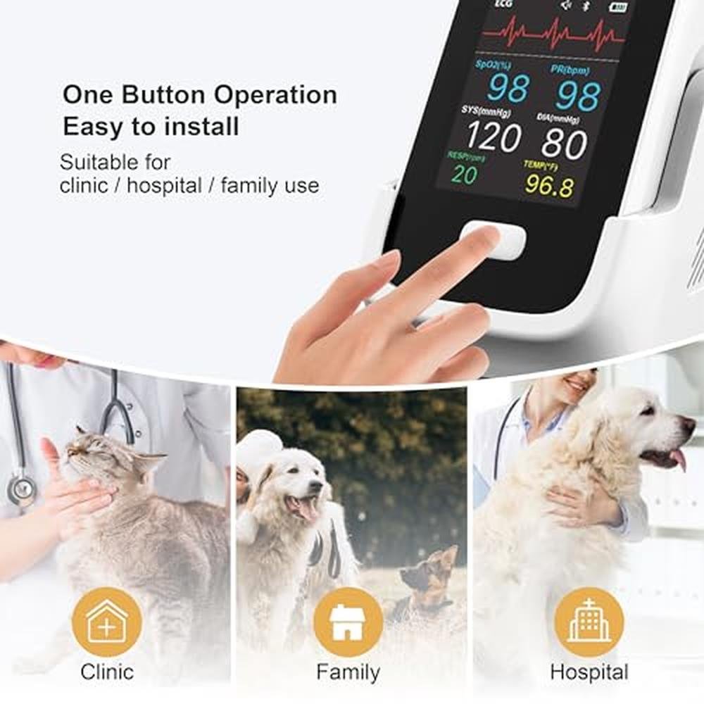- 6 FUNCTIONS VETERINARY MONITOR : Pepultech PES1 PRO has many functions including ECG.SPO2.HR,NIBP,RESP,Temp, and comes with many accessories that perfectly meet family or clinic needs. (2% accuracy)