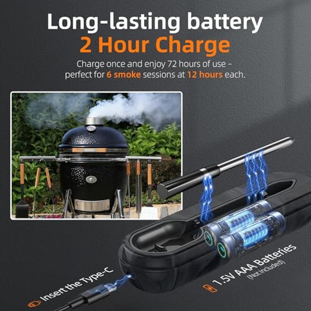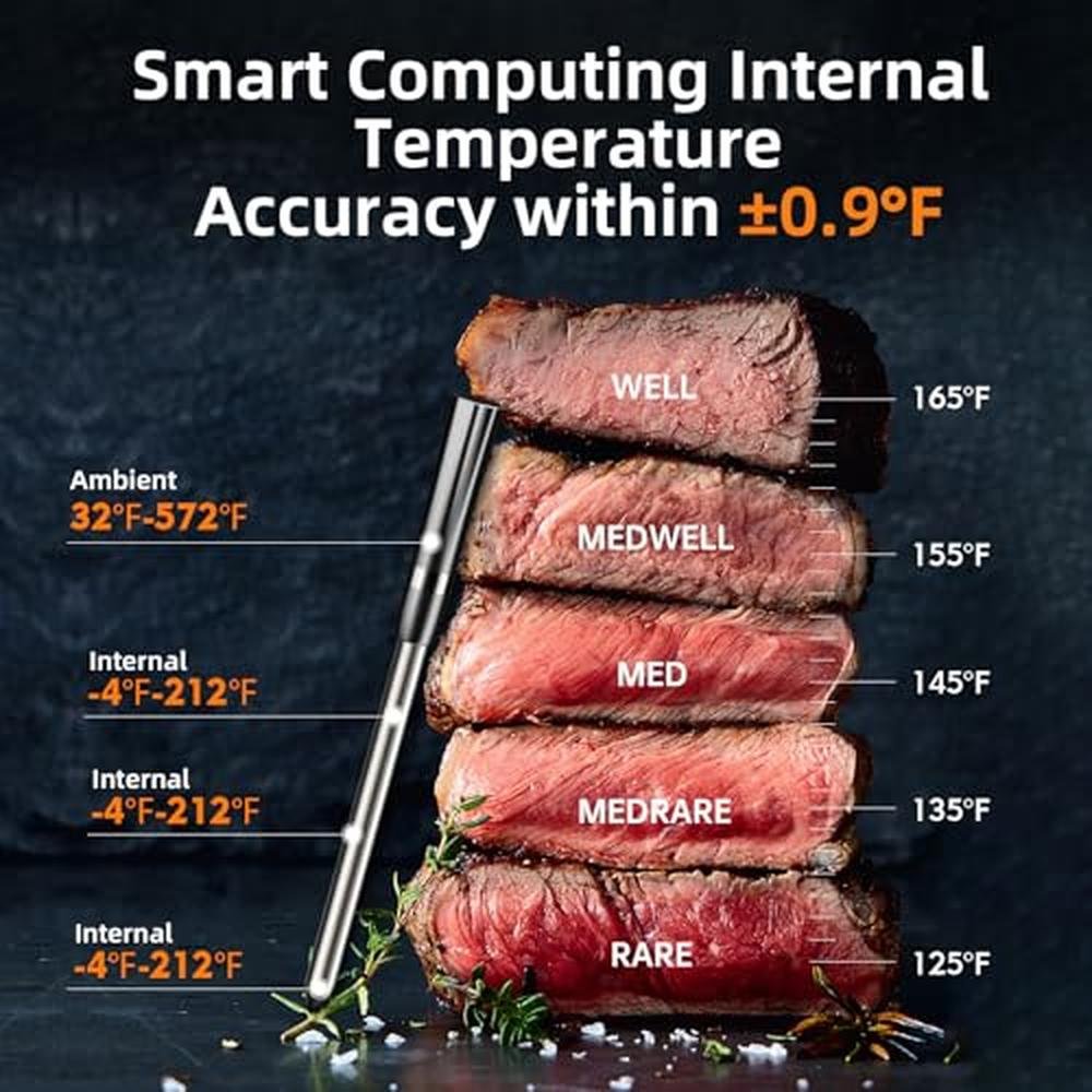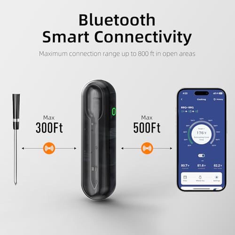 Smart Bluetooth Wireless Meat Thermometer, 800FT Remote Monitoring,Up to 72 Hours of Power, Dual Alarm, Accurate 0.9F Food Thermometer for Oven, Grill, Smoker, BBQ, Turkey, Stocking Stuffers for Men
