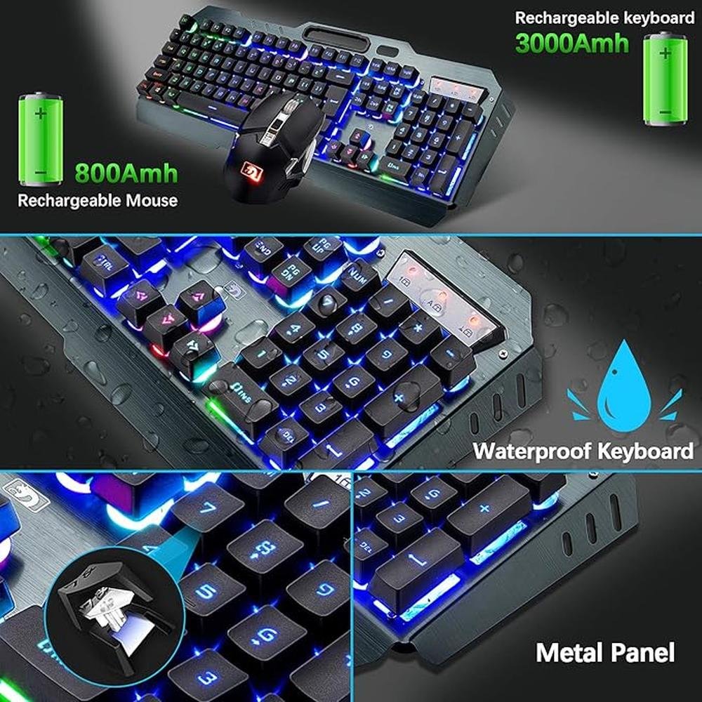 Wireless Gaming Keyboard Mouse | Rechargeable Rainbow Backlit with 3800mAh Battery | Premium Gaming Experience