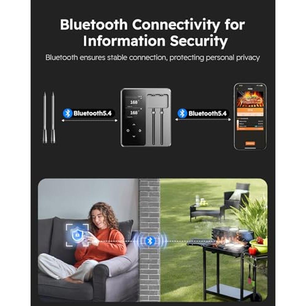 - Bluetooth Connection Protects Privacy: Stay connected and secure with advanced Bluetooth5.4 technology that ensures stable data transmission without compromising your privacy. Enjoy a smooth grilling experience with no drop-offs or interruptions