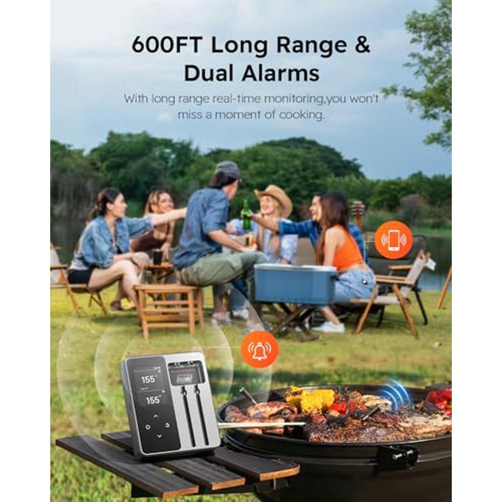 - 600FT Long-Distance Control with Dual Alerts: Take full control of your grilling from up to 600 feet away! With dual alerts (app and Repeater), youll never miss a crucial moment-your meat is always on track for perfection, even if you're far from the grill
