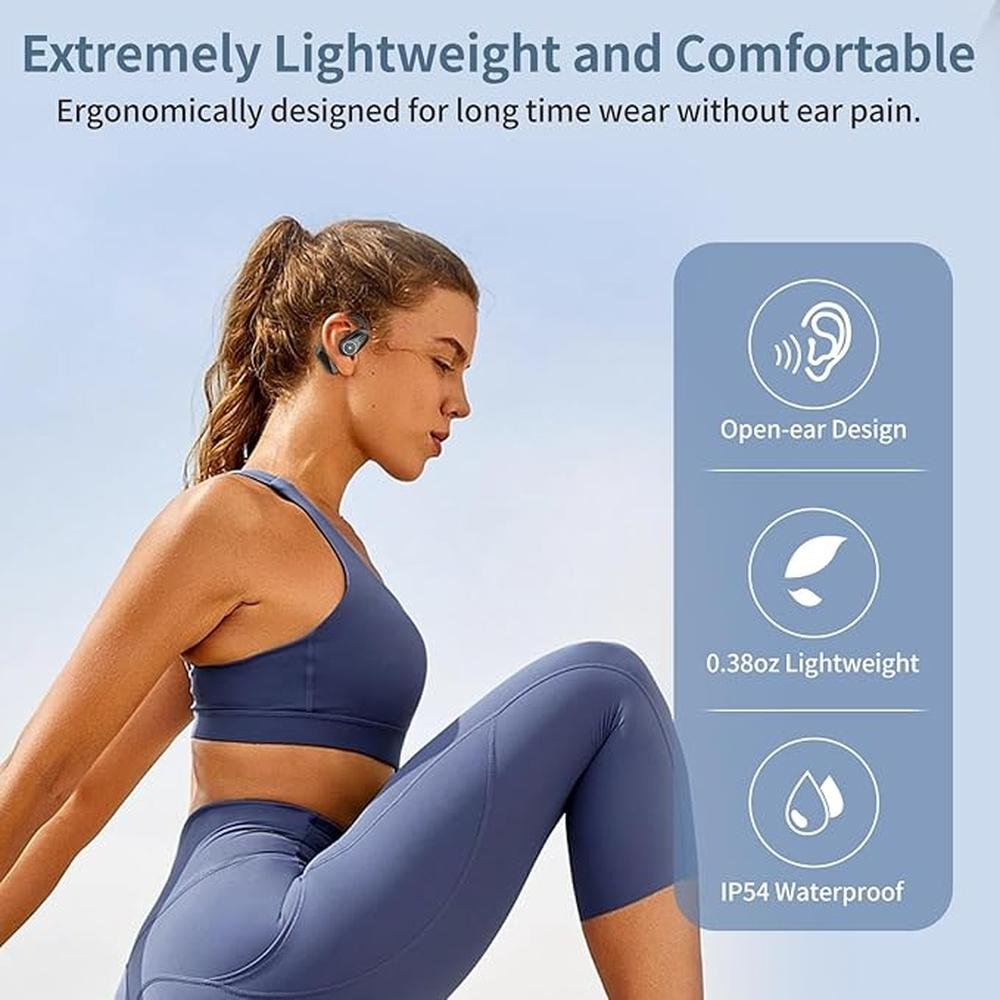 - Extreme Comfortable Open Ear DesignOpen-ear headphone designed is ergonomically, keeps the ear canal clean does not harm the eardrum, comfortable secure fit that around the ears for hours of working The single open ear earbuds weigh only 10g and is extremely lightweight, ear hooks are made of silicone and wont shift or fall off during sports and there are no cables to bind Open-ear buds design allows to be aware of surroundings when listening to your favorite music.