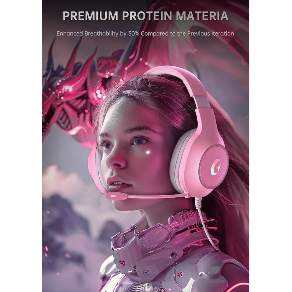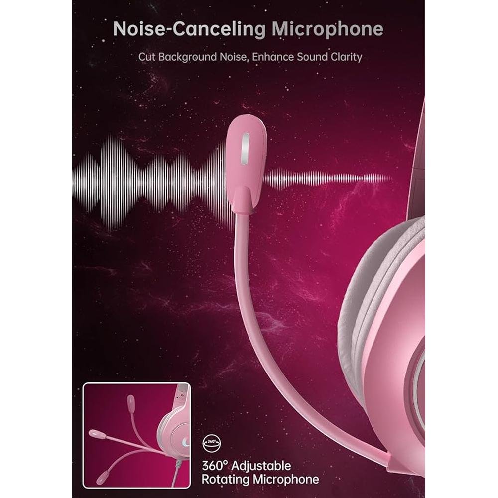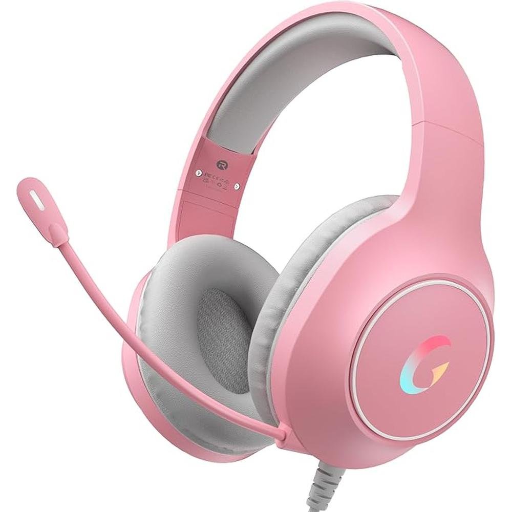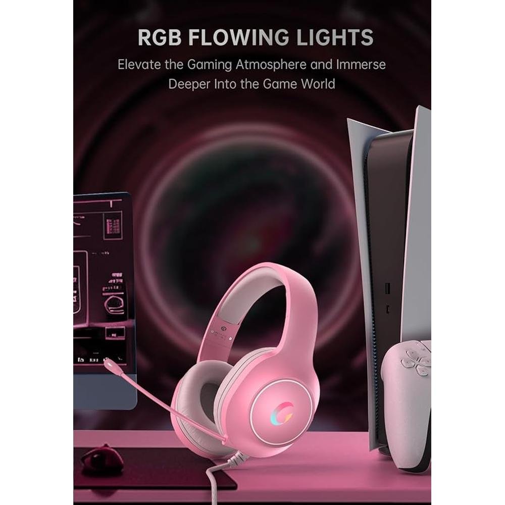 CM7002 Gaming Headset for PS5, PS4, PC, Mac, Switch, Xbox Series, Surround Sound RGB Gaming Headphones with Noise Canceling Microphone, 50MM Dynamic Drivers, 3.5MM Audio Jack, Light Pink