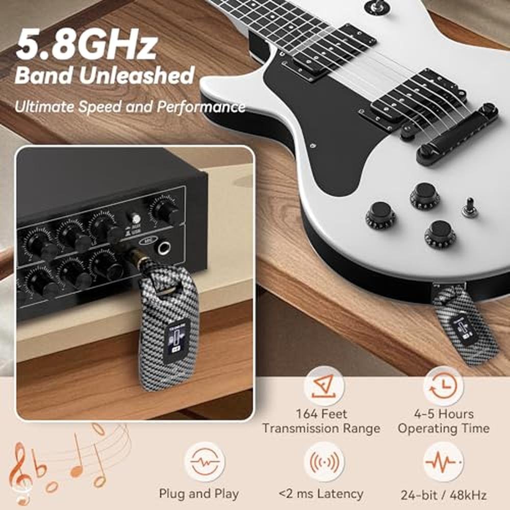 Elevate your music experience with the Crispaire 5.8GHz Wireless Guitar System, designed for electric and acoustic guitars, bass guitars, and other electro-acoustic instruments. This advanced system combines cutting-edge 5.8GHz wireless technology with 24-bit/48kHz lossless audio, delivering professional-grade sound with minimal latency. With its sleek design and user-friendly interface, the Crispaire 5.8GHz Wireless Guitar System is perfect for musicians who require a high-performance wireless audio system.