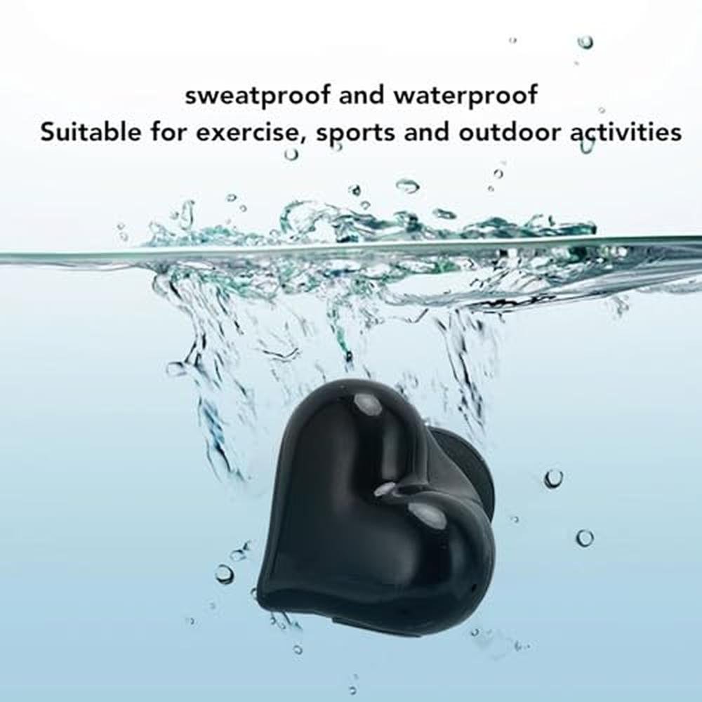 Heart Shaped Earbuds, BT 5.3 HiFi Stereo Sound Noise Canceling Earphones with Charging Case, Cute in Ear Earbuds for Lover Couples for Valentine Sport Travel (Black)