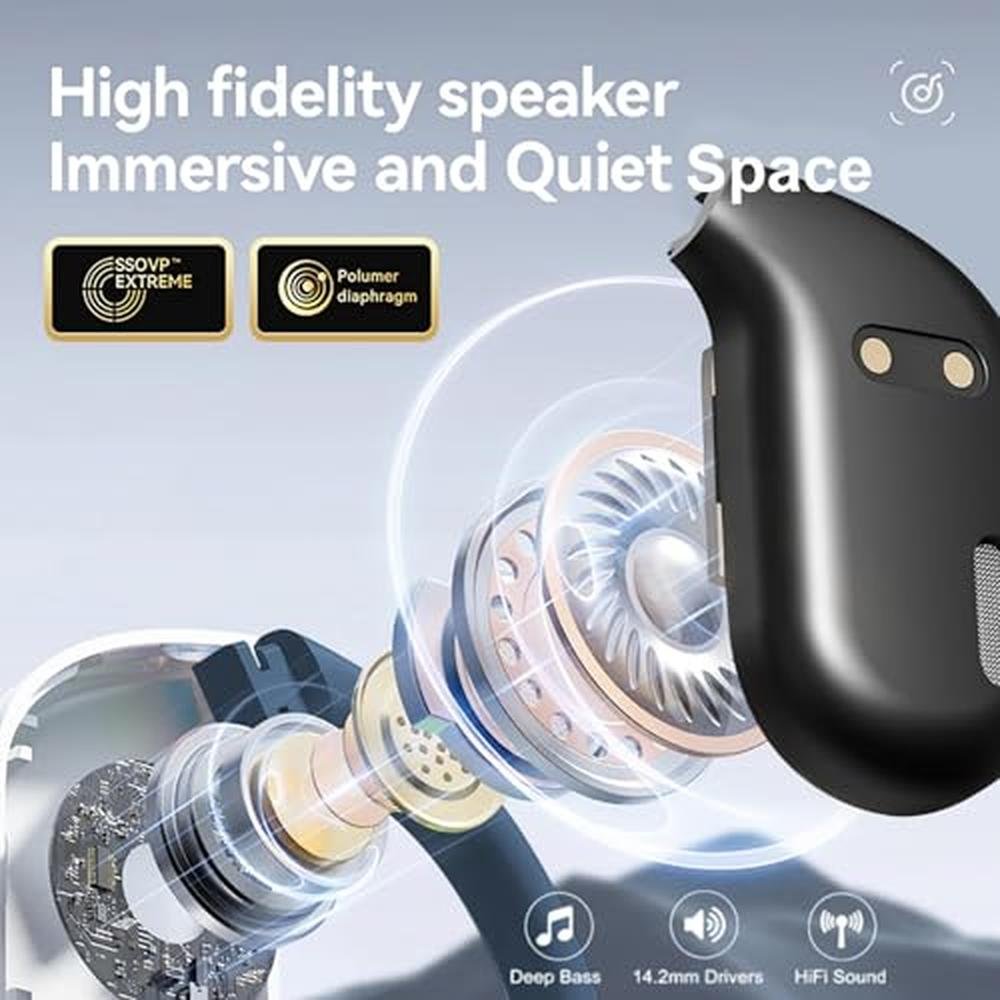 Indulge in unparalleled sound quality and comfort with the HJX OWS M82 Open Ear Earbuds, designed to elevate your audio experience. As a top choice for ear hjx enthusiasts, these wireless earphones boast an impressive 55-hour long battery life, perfect for extended workouts or runs. Equipped with Bluetooth 5.3 technology and stereo deep bass, the HJX OWS M82 earbuds deliver crystal-clear audio that immerses you in your favorite tunes. The ergonomic earhooks and open-ear design ensure a secure fit, while the ENC noise-cancelling mic allows for seamless communication. Whether you're a fitness enthusiast or an avid music lover, the HJX OWS M82 earbuds offer the perfect blend of comfort, safety, and premium sound without blocking your ears.