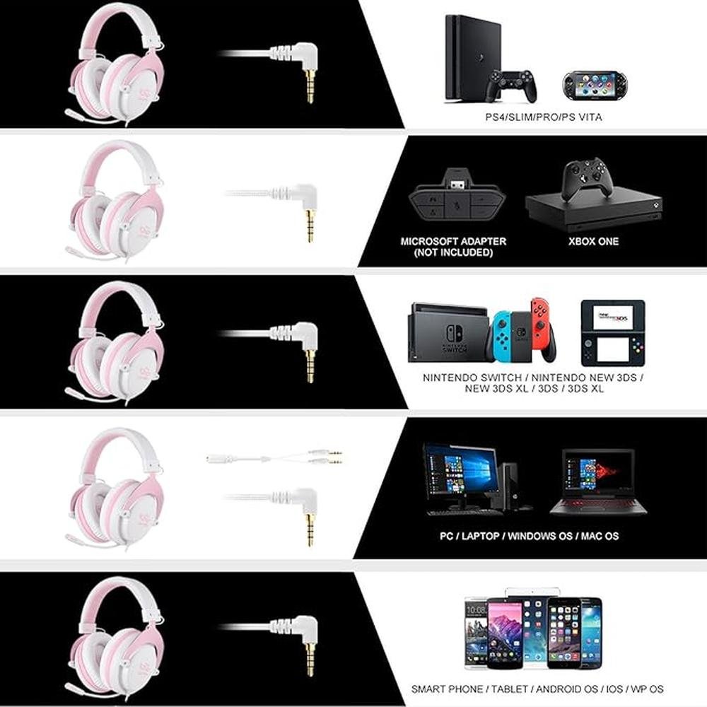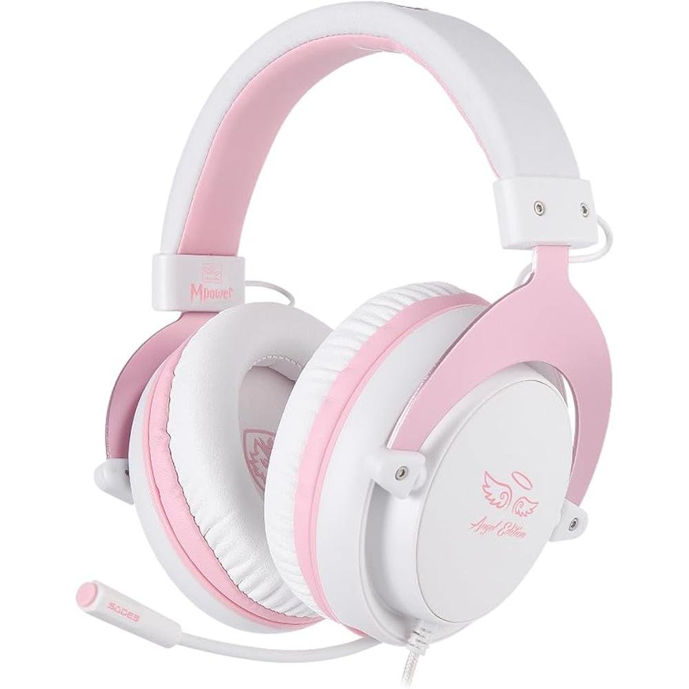 MPOWER Stereo Gaming Headset for PS4, PC, Mobile, Noise Cancelling Over Ear Headphones with Retractable Flexible Mic & Soft Memory Earmuffs for Laptop Mac Games-Angel Edition
