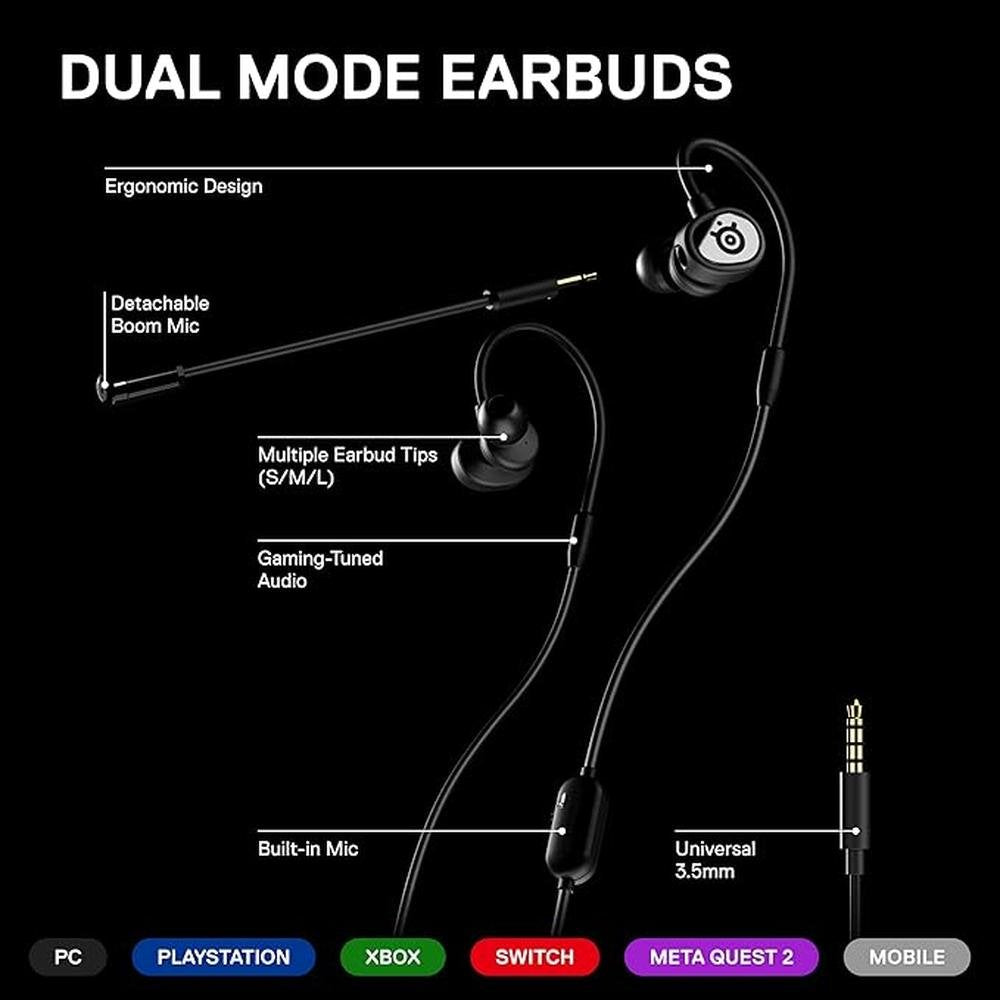 SteelSeries Tusq in-Ear Mobile Gaming Headset, Dual Microphone with Detachable Boom Mic, Ergonomic Suspension Design Earphones for Mobile,Black